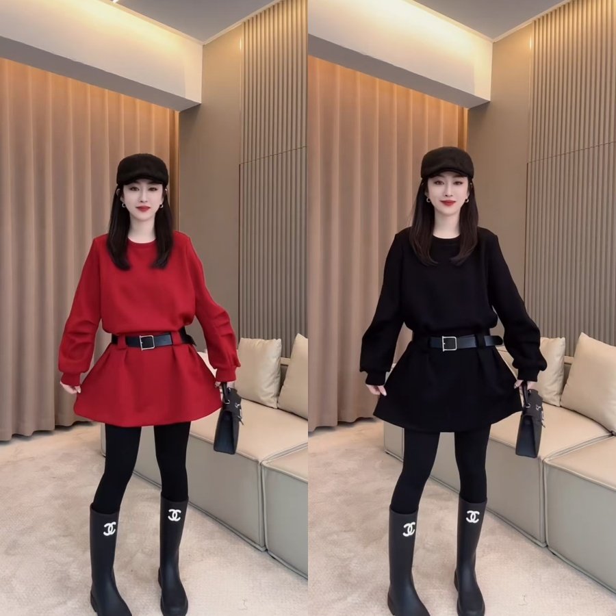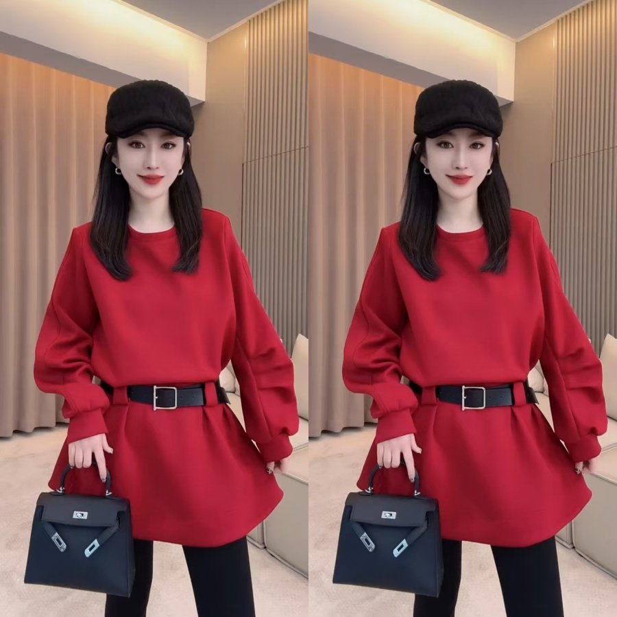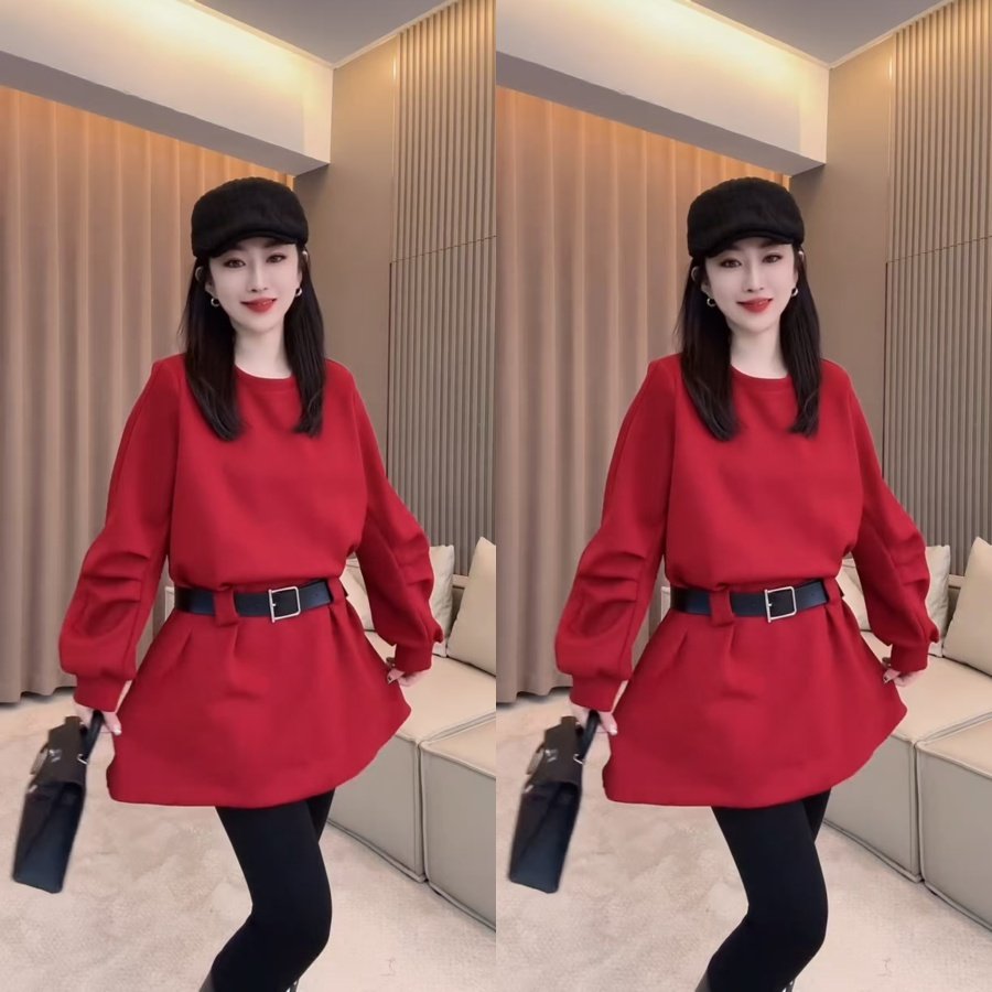📚 新年腰带卫衣连衣裙秋冬新款百搭减龄韩版显瘦遮肉A字裙休闲时尚