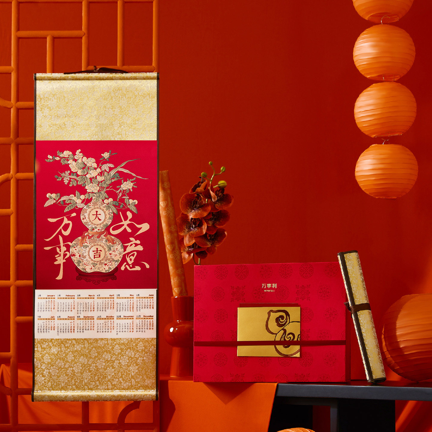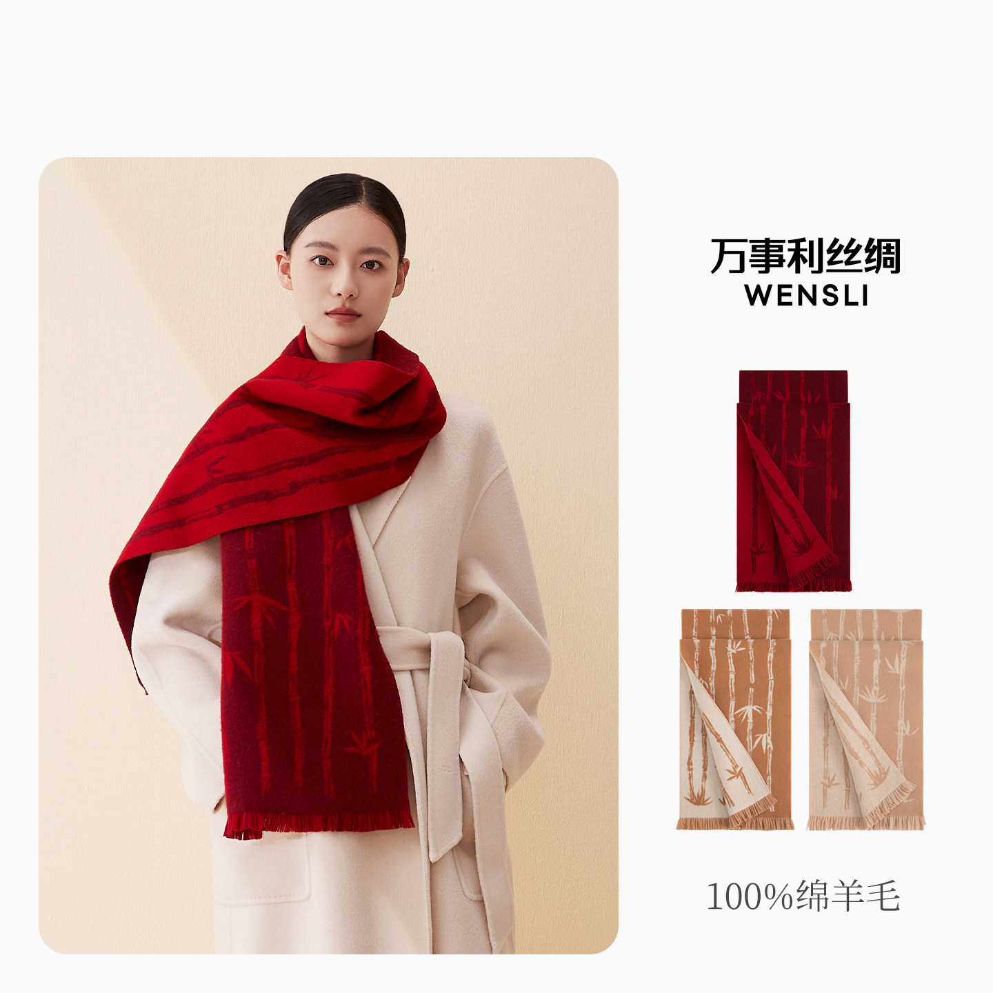 📚 万事利26新年礼羊毛围巾节节高丝绸年历精致包装送礼锦书送福