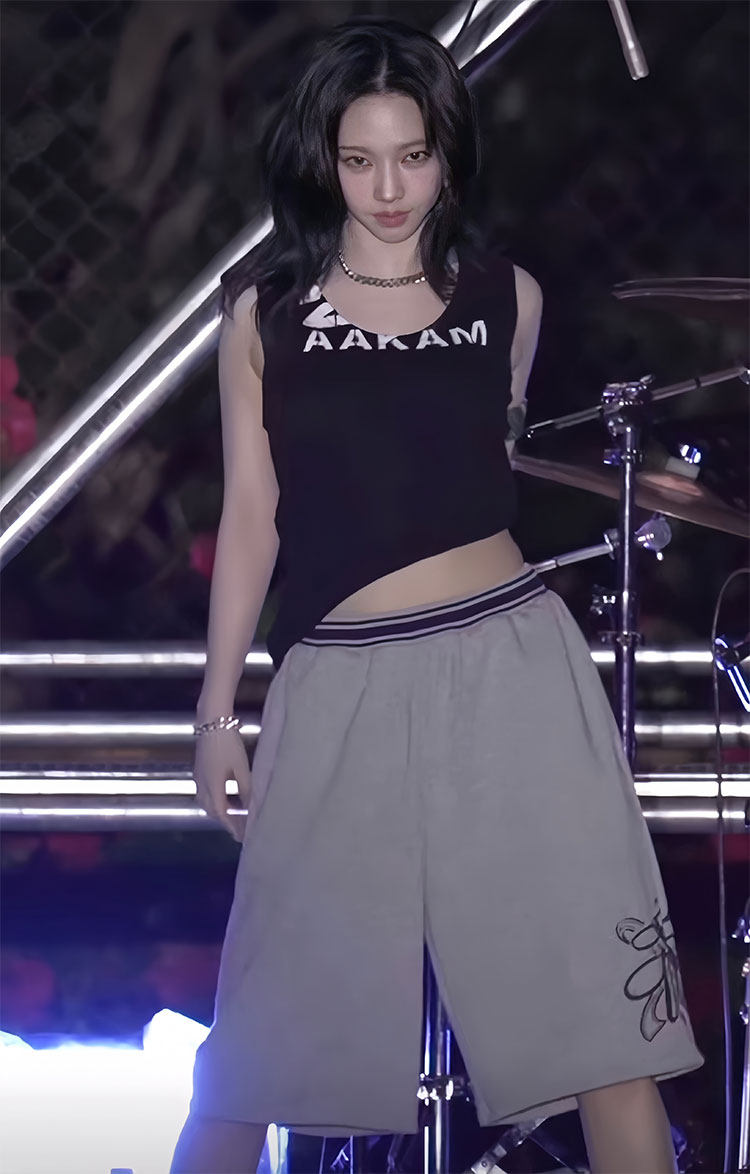 📚 aespa柳智敏同款韩国NYXX美式复古运动短裤女夏宽松阔腿五分裤子