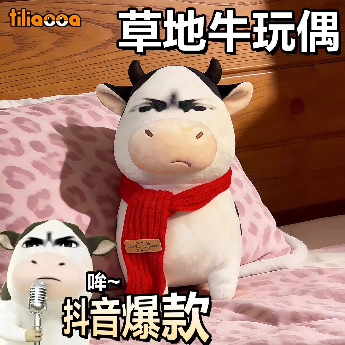 📚 草地牛玩偶大号哞哞牛公仔儿童毛绒玩具抽象丑萌牛表情包周边礼物