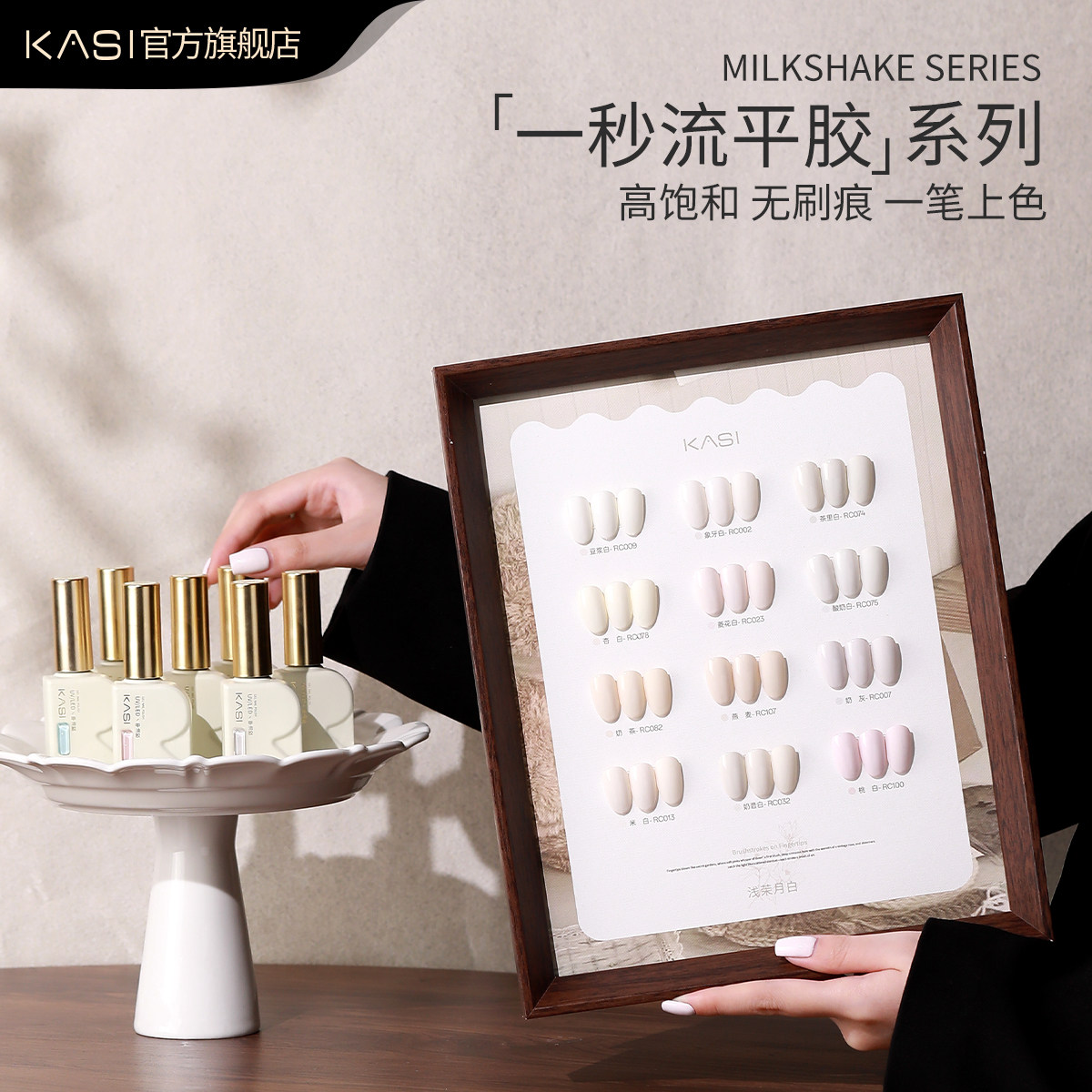 📚 KaSi一秒流平纯色甲油胶2026年新款法式高饱和乳白黑色美甲店专用