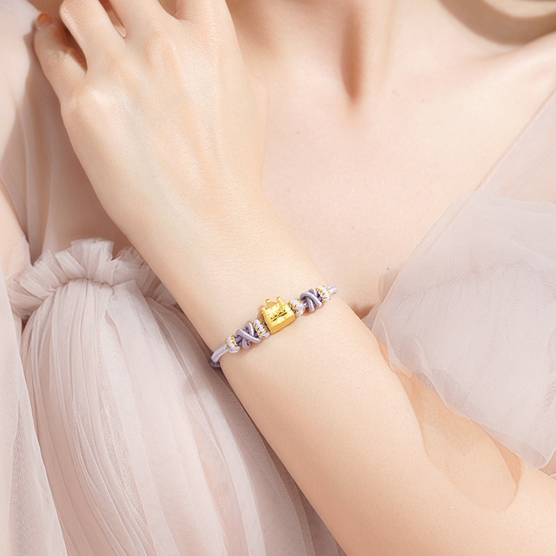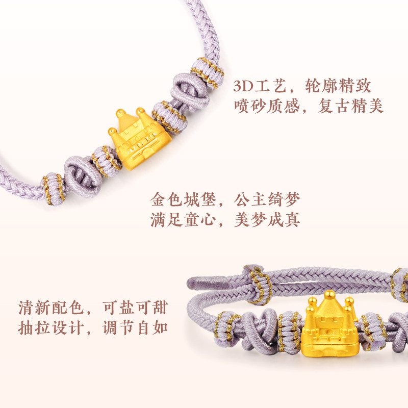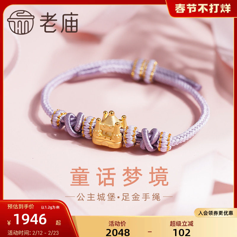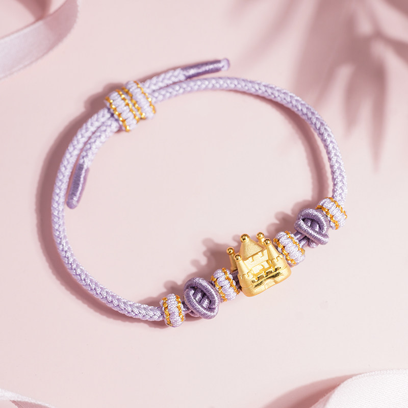📚 情人节礼物老庙黄金足金公主城堡淡紫手绳3D童话梦境少女心