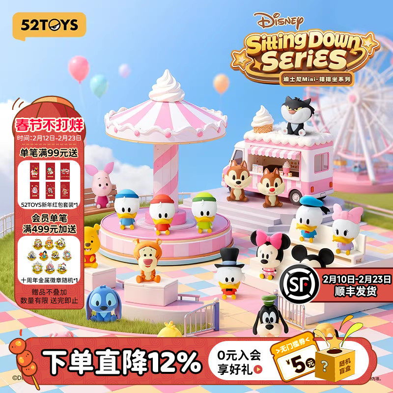 📚 52TOYS迪士尼Mini排排坐系列萌粒盲盒手办小鼻嘎潮玩玩具摆件礼物