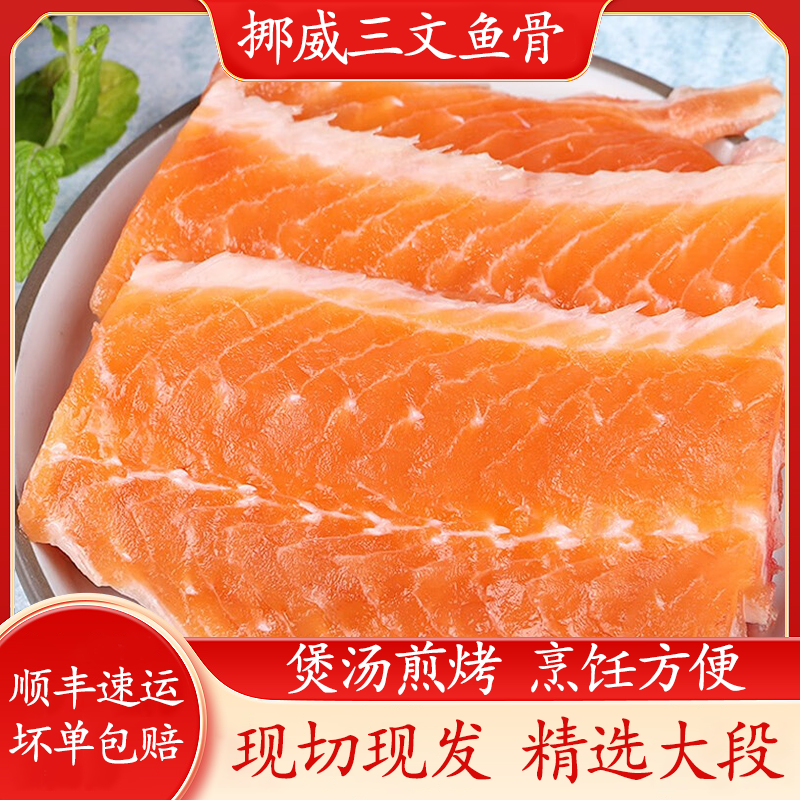 📚 挪威冰鲜三文鱼鱼骨排大西洋鲑鱼鱼骨排香煎炖汤三文鱼边角料人吃