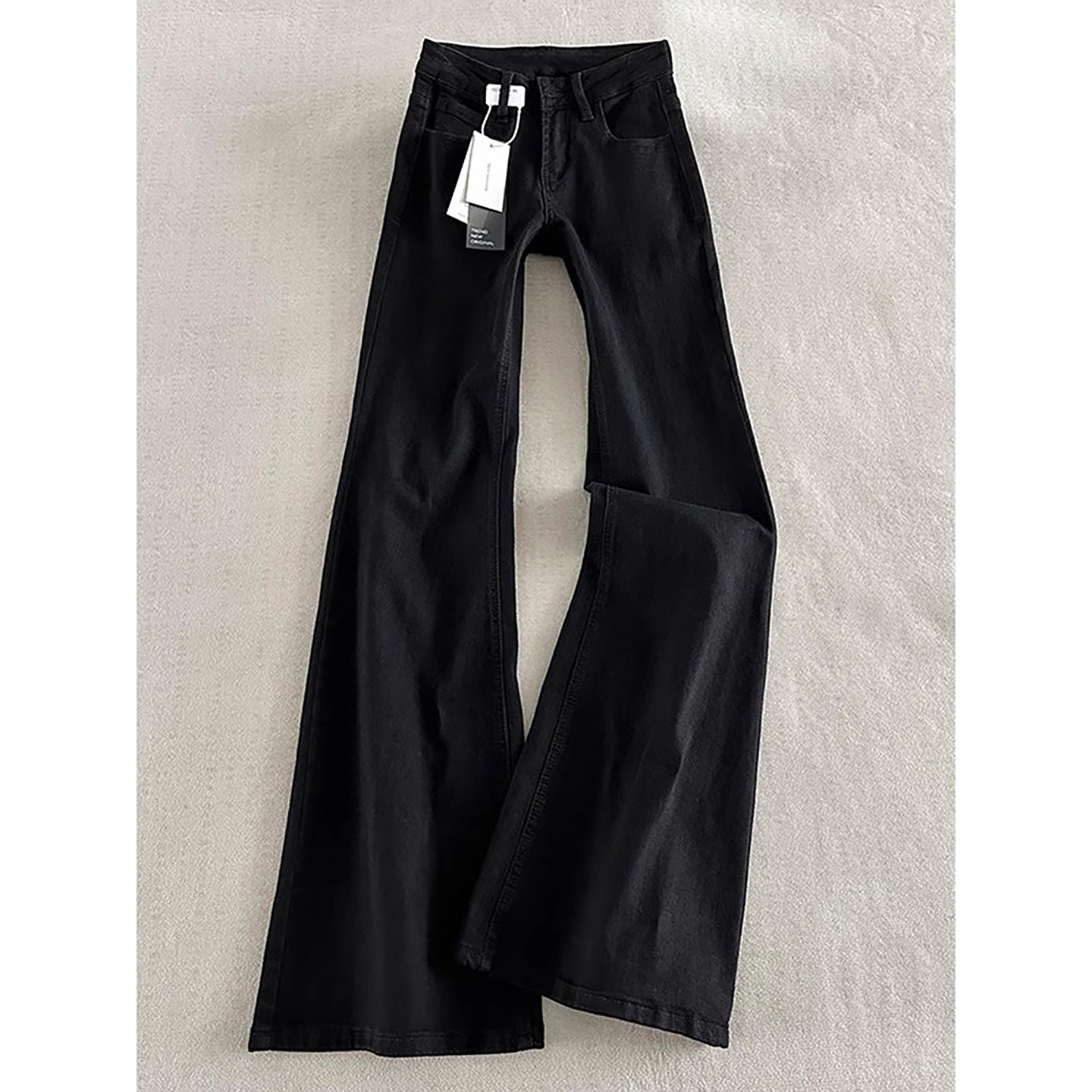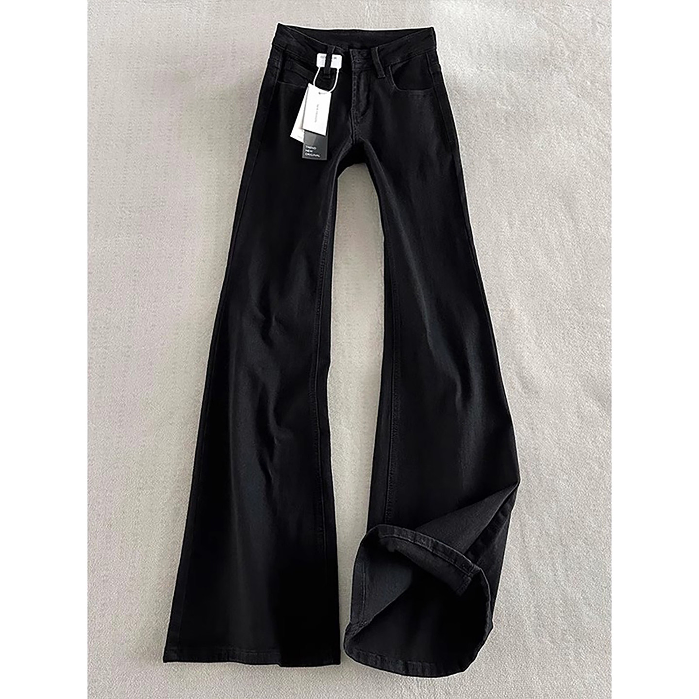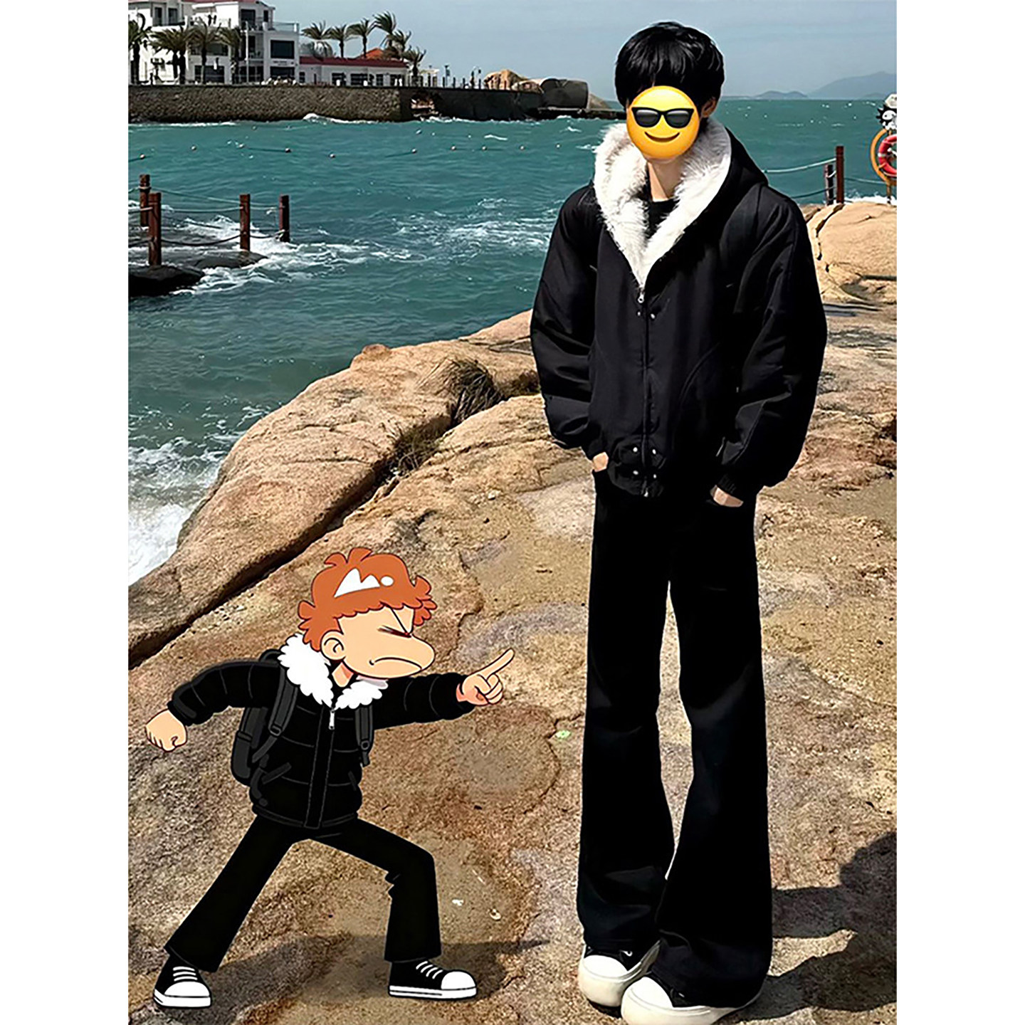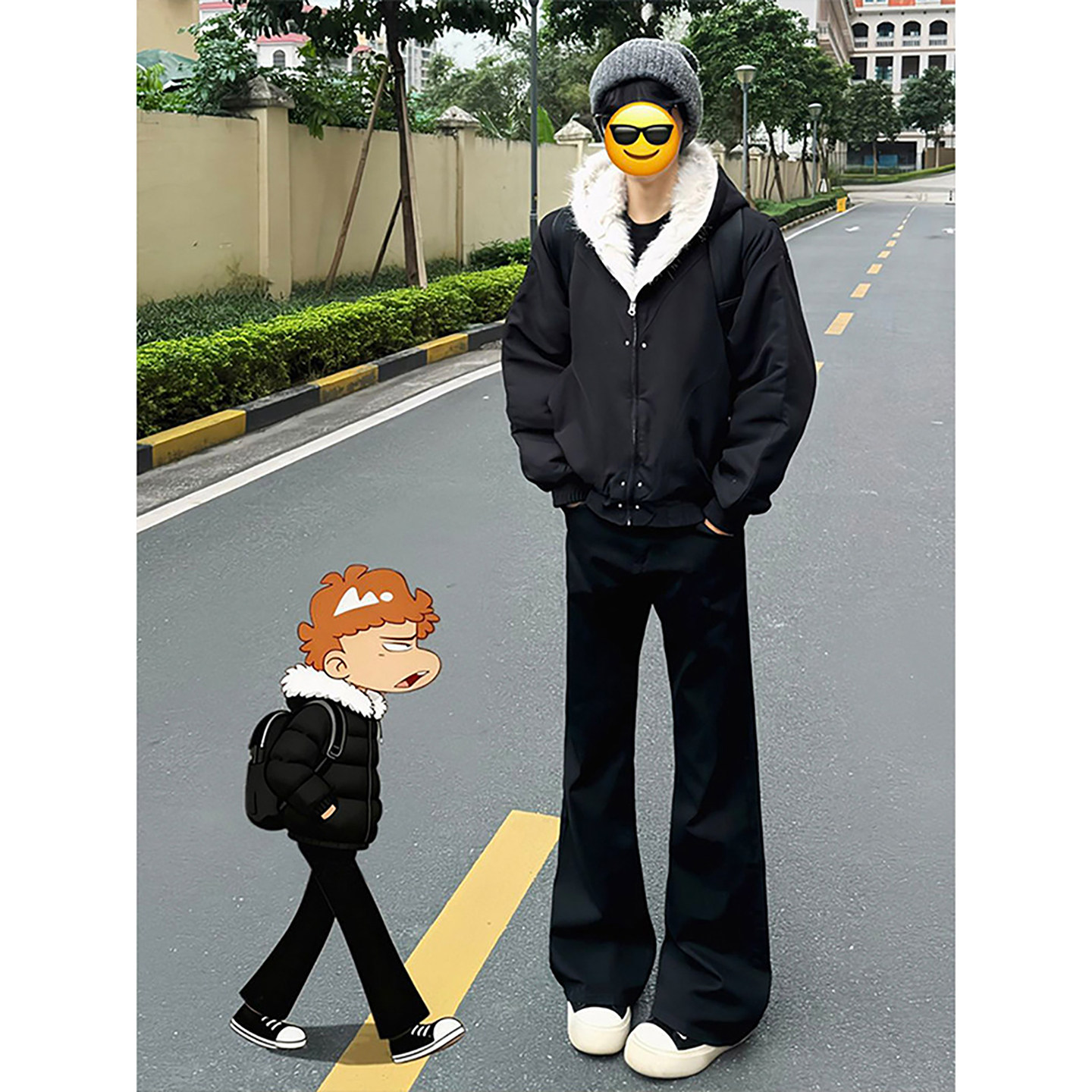 📚 黑色柳叶弯刀牛仔裤男款厚款加绒高腰提档裤子直筒窄版显瘦微喇裤