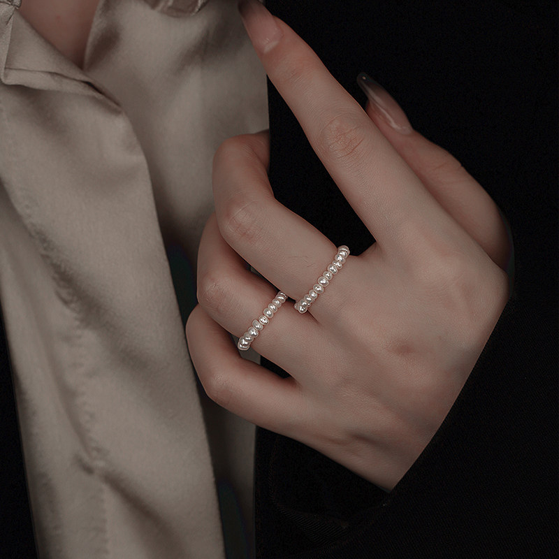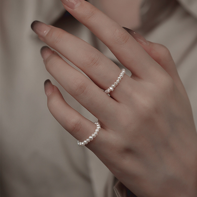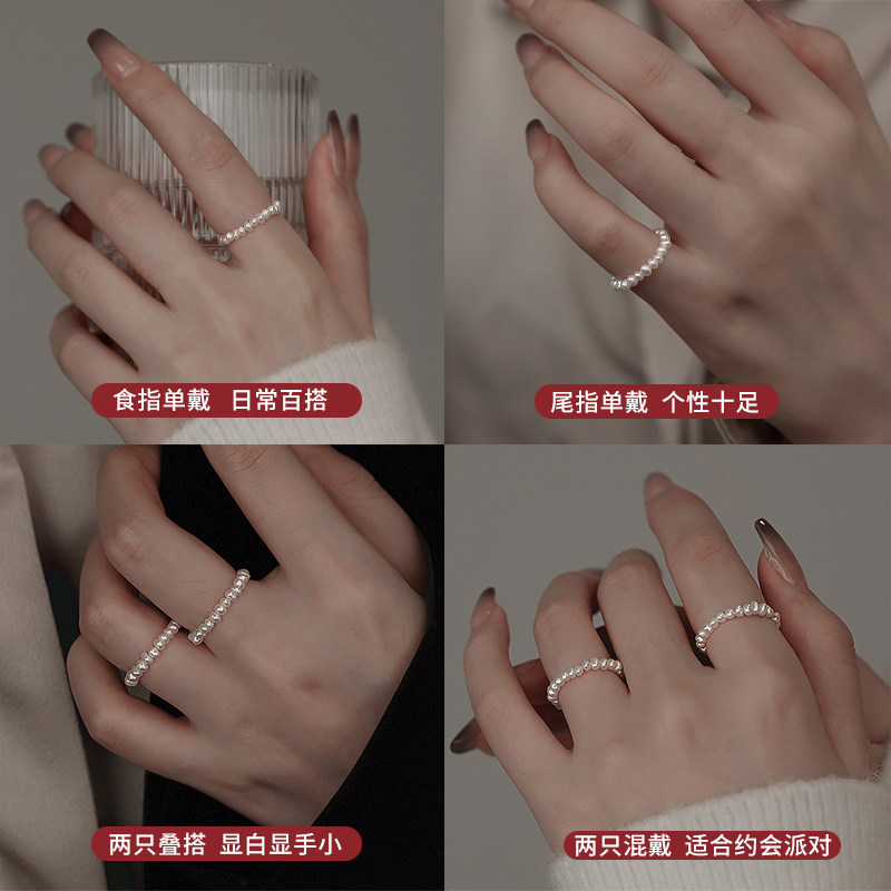 📚 14K包金2mm天然淡水珍珠戒指女小众设计高级感叠戴轻奢食指戒尾戒