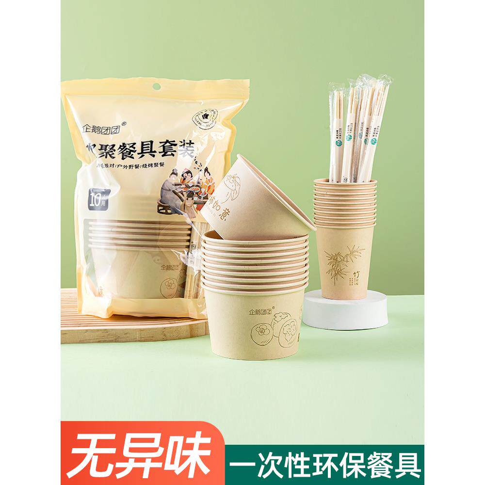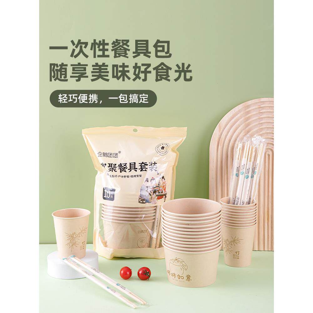 📚 一次性餐具全套三件套碗筷套装食品级露营野餐盘子筷子饭碗纸碗盒