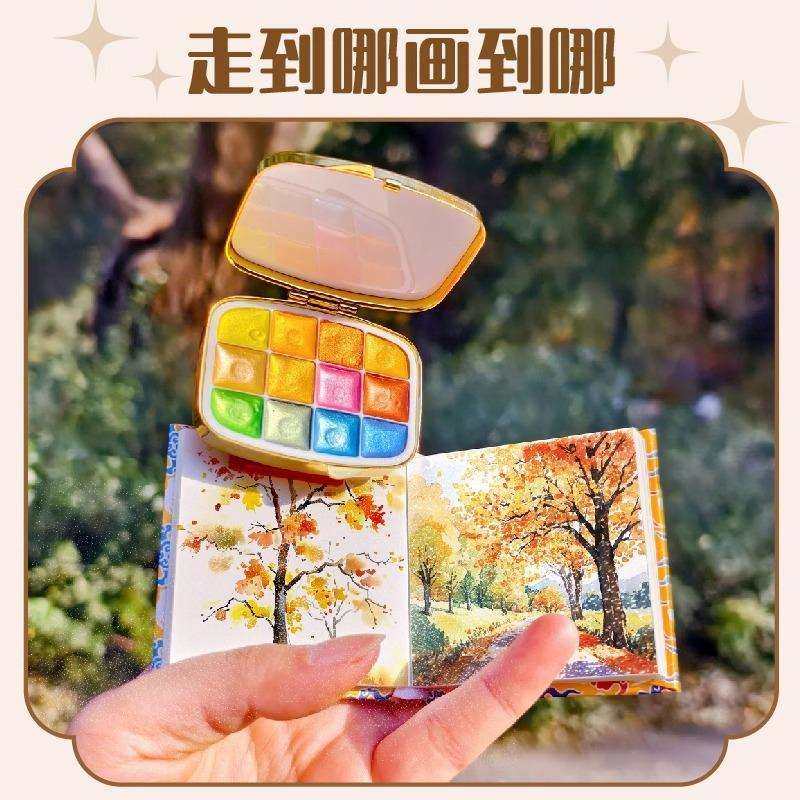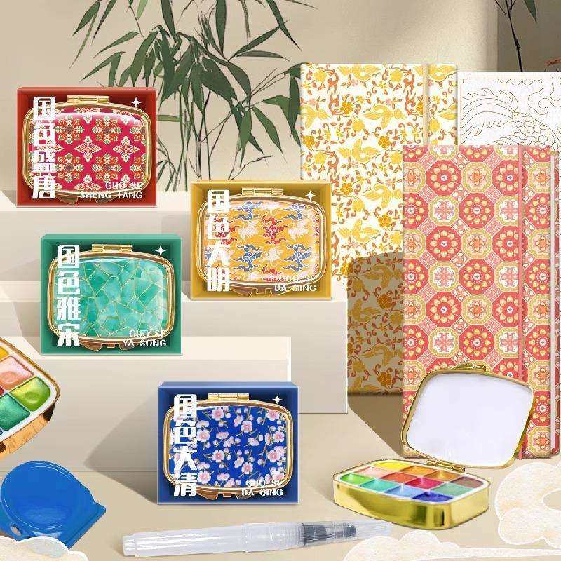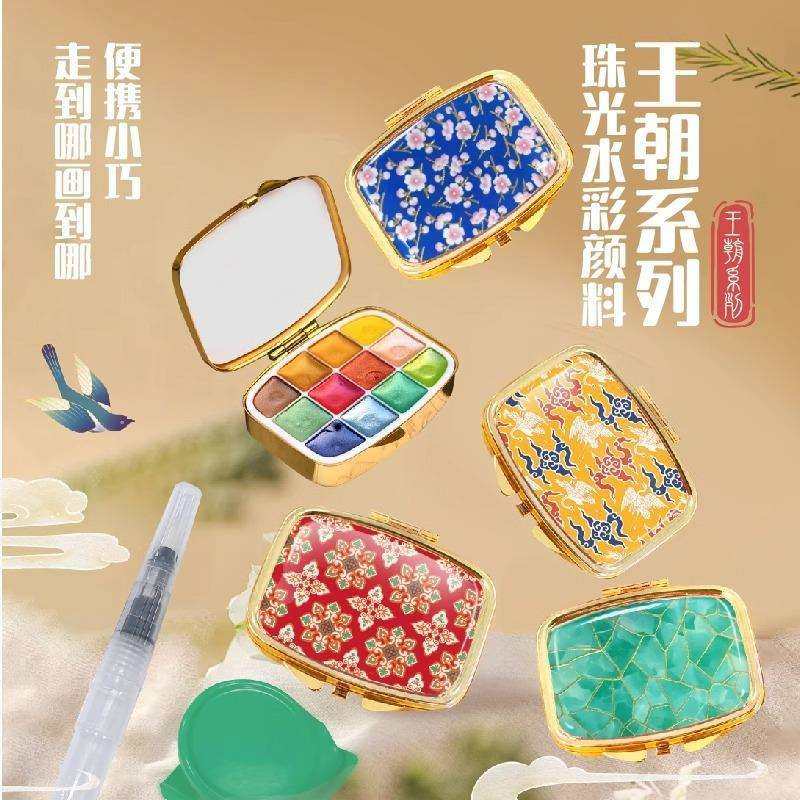 📚 飞乐鸟唐宋明清王朝系列国风珠光水彩颜料涂色风琴线稿本迷你水彩