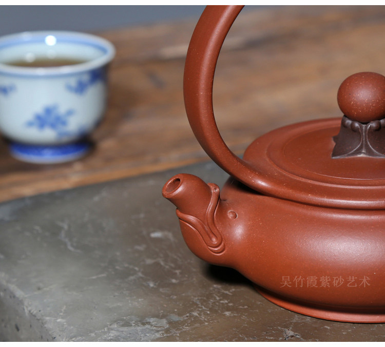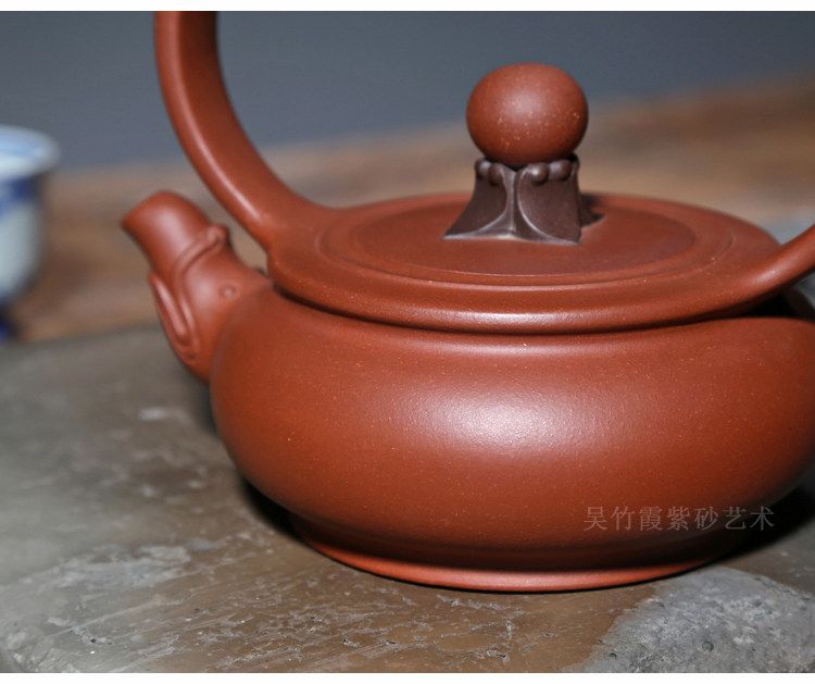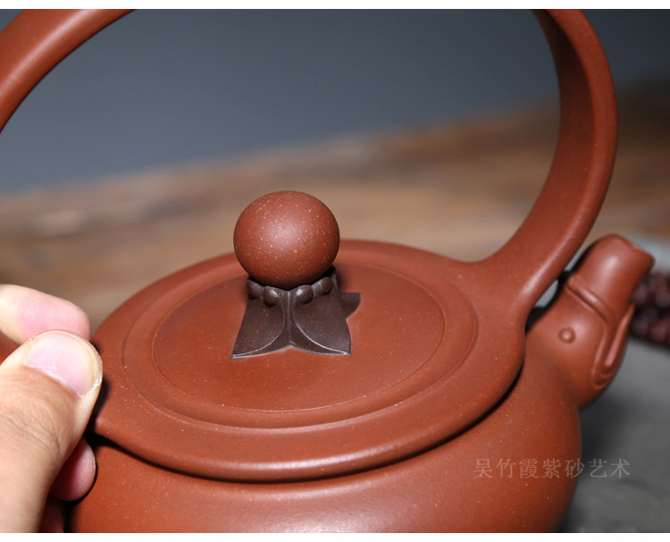 📚 宜兴紫砂壶孤品茶壶吴竹霞原矿底槽青500CC纯手工龙鼎戏珠提梁壶