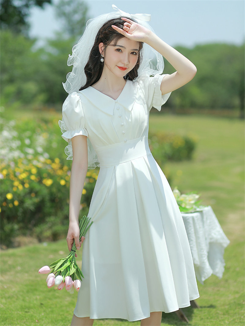 📚 法式白色小礼服裙女2026新款平时可穿领证登记宴会气质洋装连衣裙