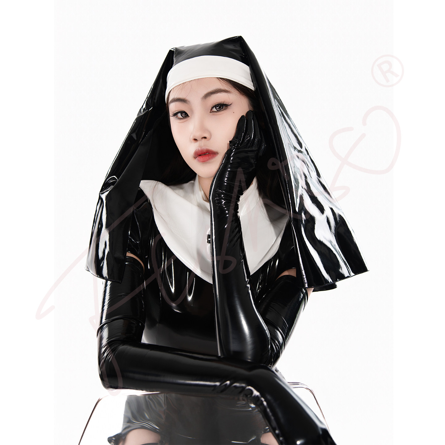 📚 Ftshist 油亮光泽乳胶黑白弹力漆皮杀手5赦免cosplay漫展修女头巾