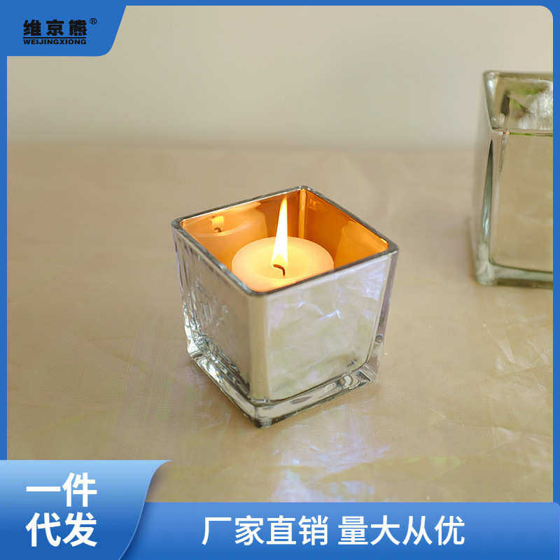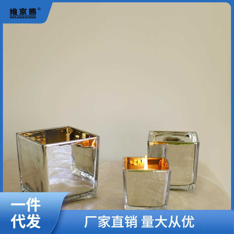 📚 方形圆形玻璃器皿方缸银镜面玻璃电镀烛台花瓶萍聚