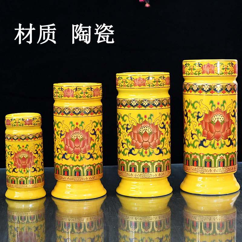 📚 家用供具佛堂香筒 线香竹签财神香桶 莲花线招财进宝陶瓷装香桶