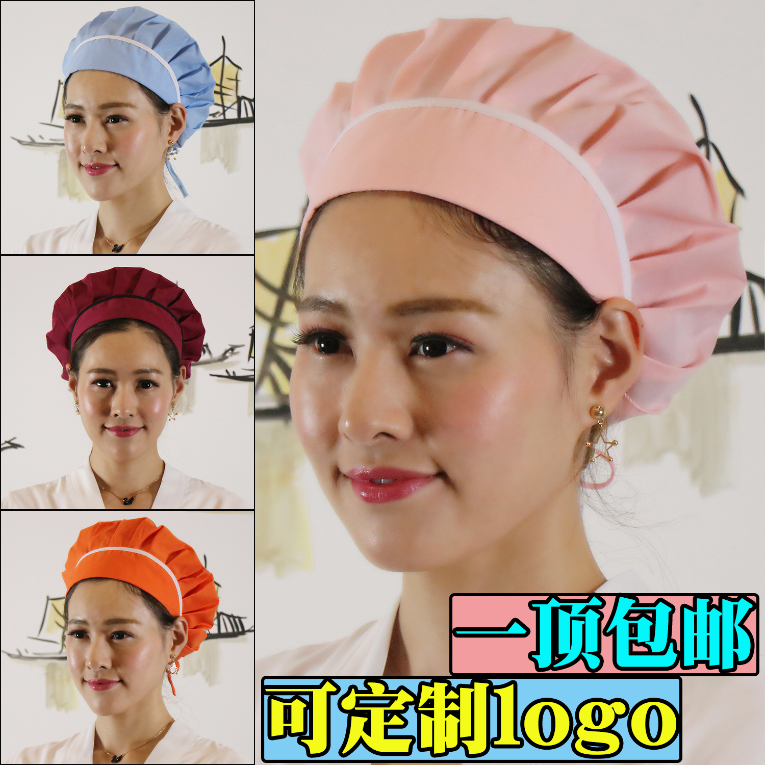 📚 厨师帽女厨房帽做饭帽子防掉头发防油烟味餐厅食堂工作大码卫生帽