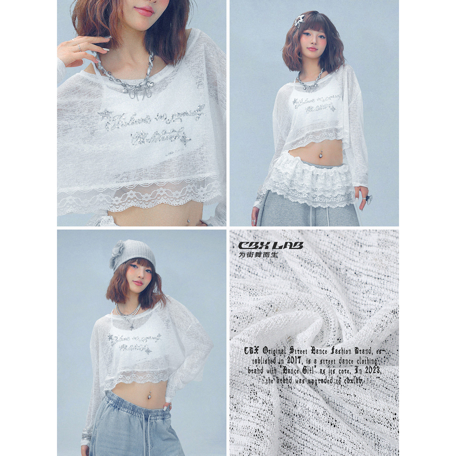 #CBXLAB #街舞潮牌 #白色微透 #轻薄镂空 #爵士罩衫 #云感蕾丝 #慵懒短款上衣 #种草笔记