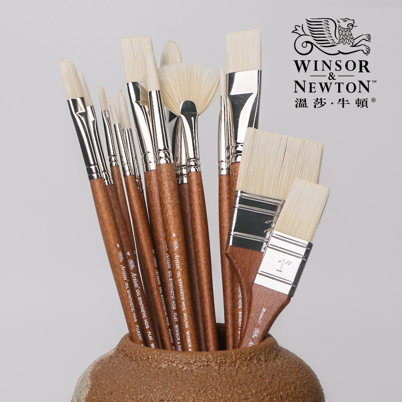 📚 进口英国温莎牛顿艺术家尼龙仿猪鬃油画笔丙烯绘画笔刷子短平圆尖榛形峰扁平峰长杆套装单支勾线扇形笔单支