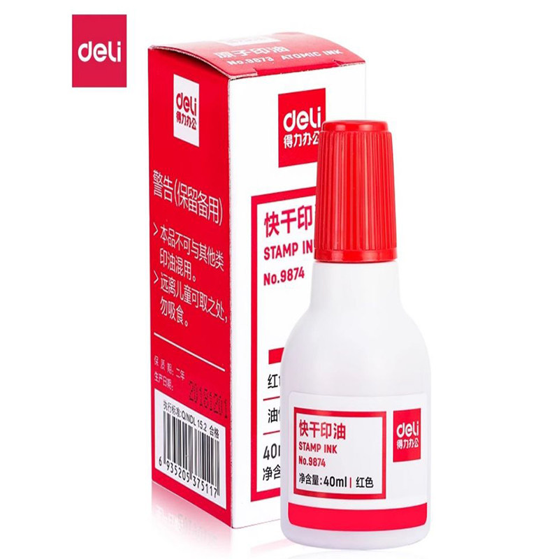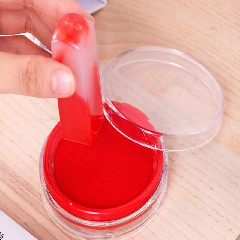 📚 得力9863快干印台红色蓝色油性大码海绵指纹印泥盒财务印盖章便携办公