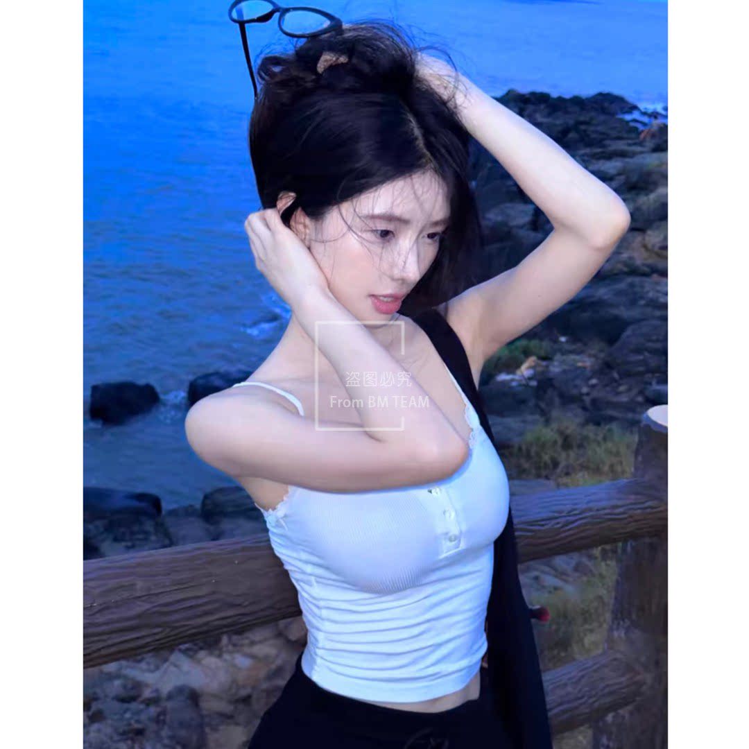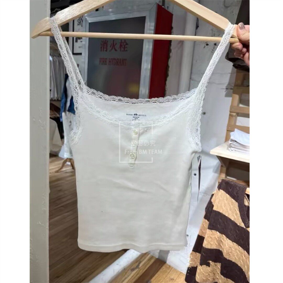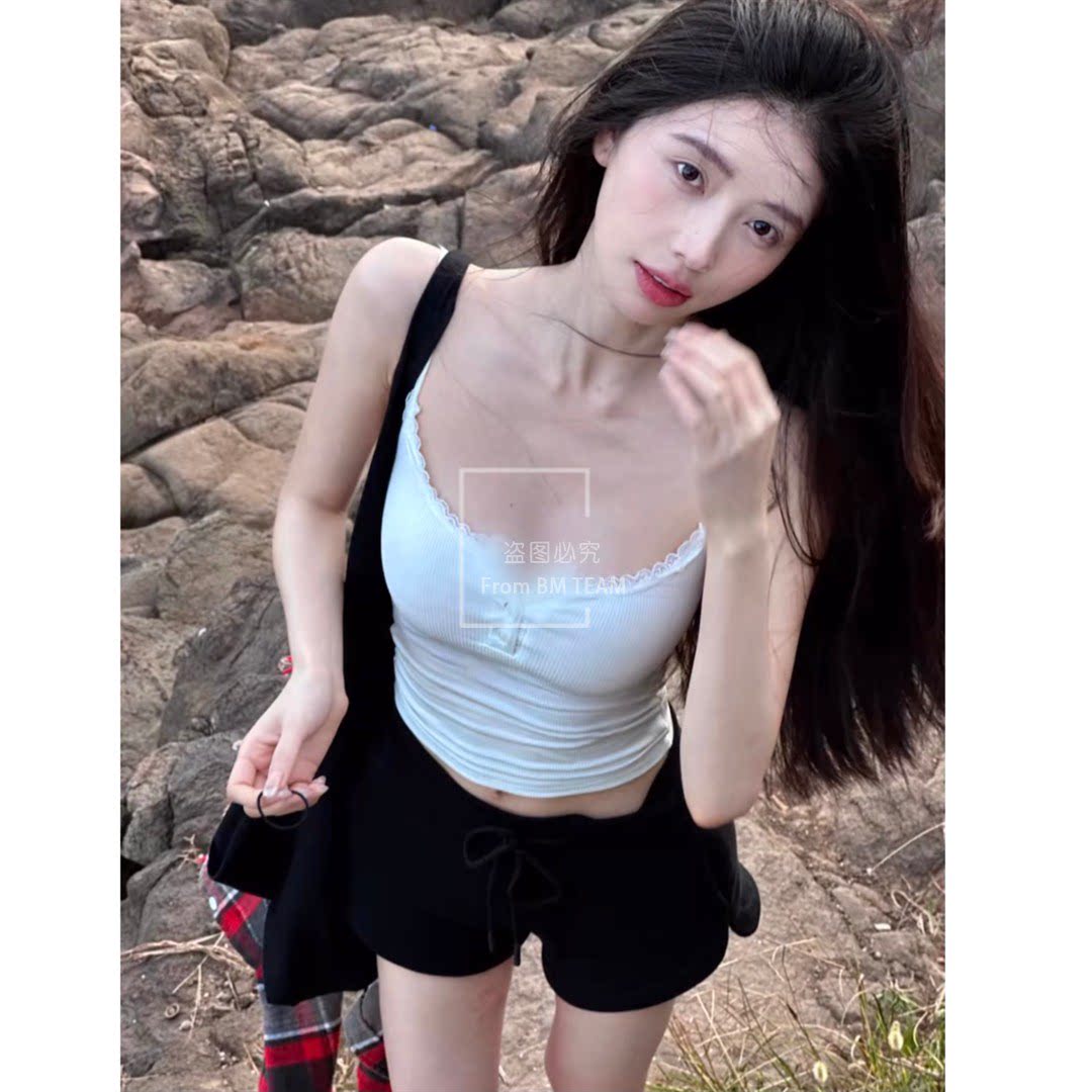 📚 BM新款三粒扣白色蕾丝边外穿小吊带背心女bm辣妹风内搭带胸垫上衣