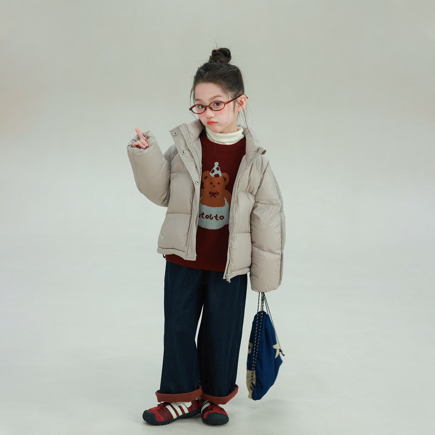 📚 大耳象女童连帽面包羽绒服冬季新款宝儿90白鸭绒保暖防寒厚外套