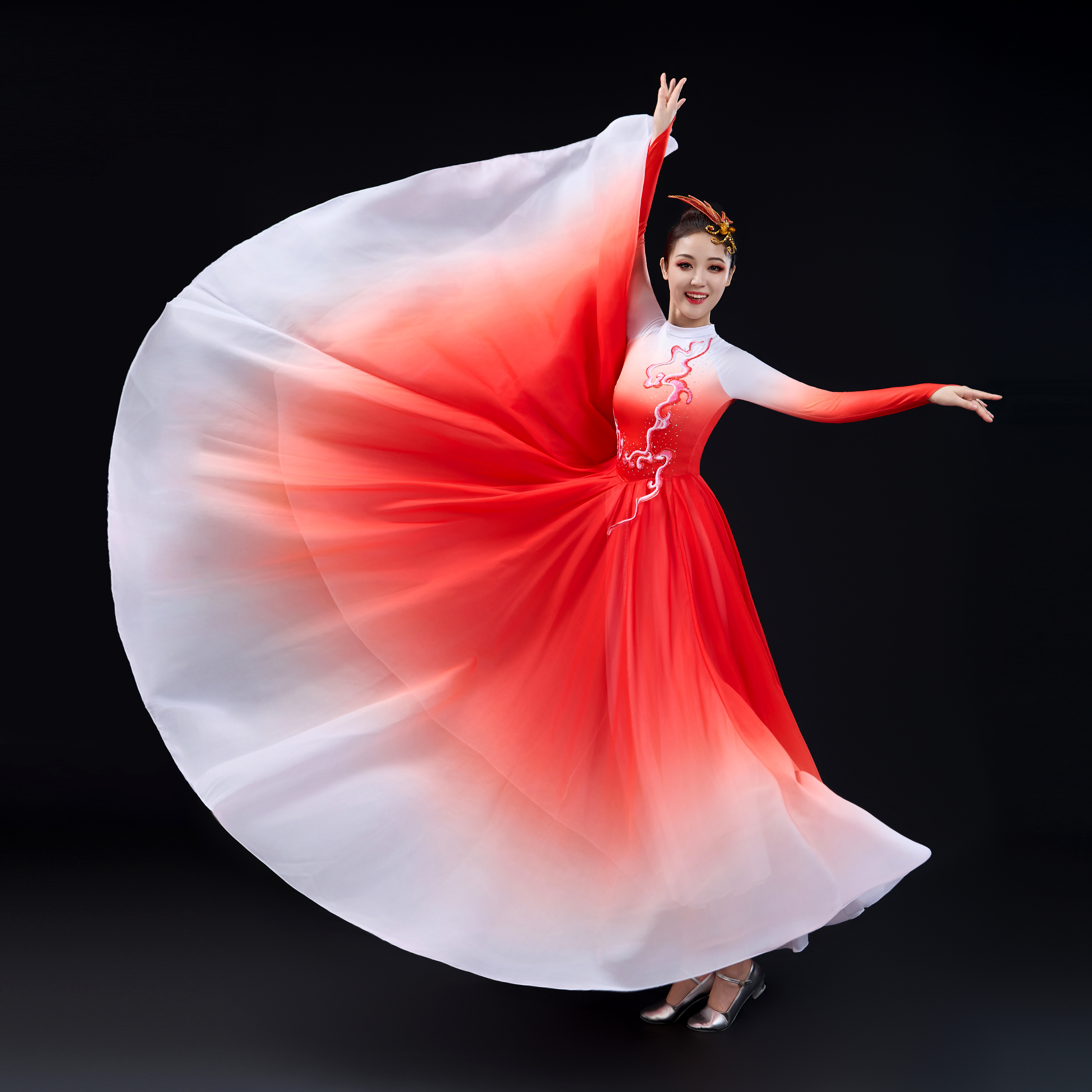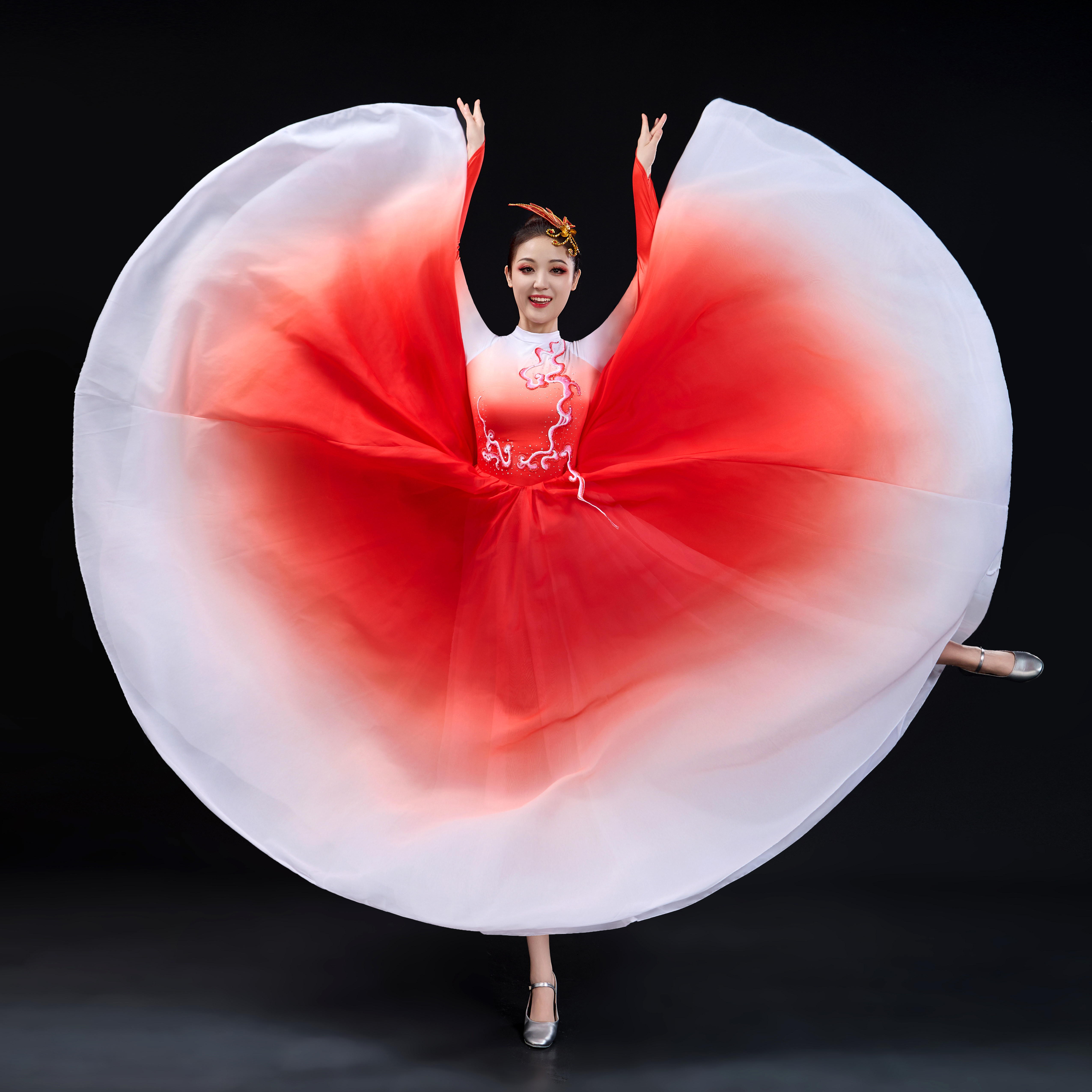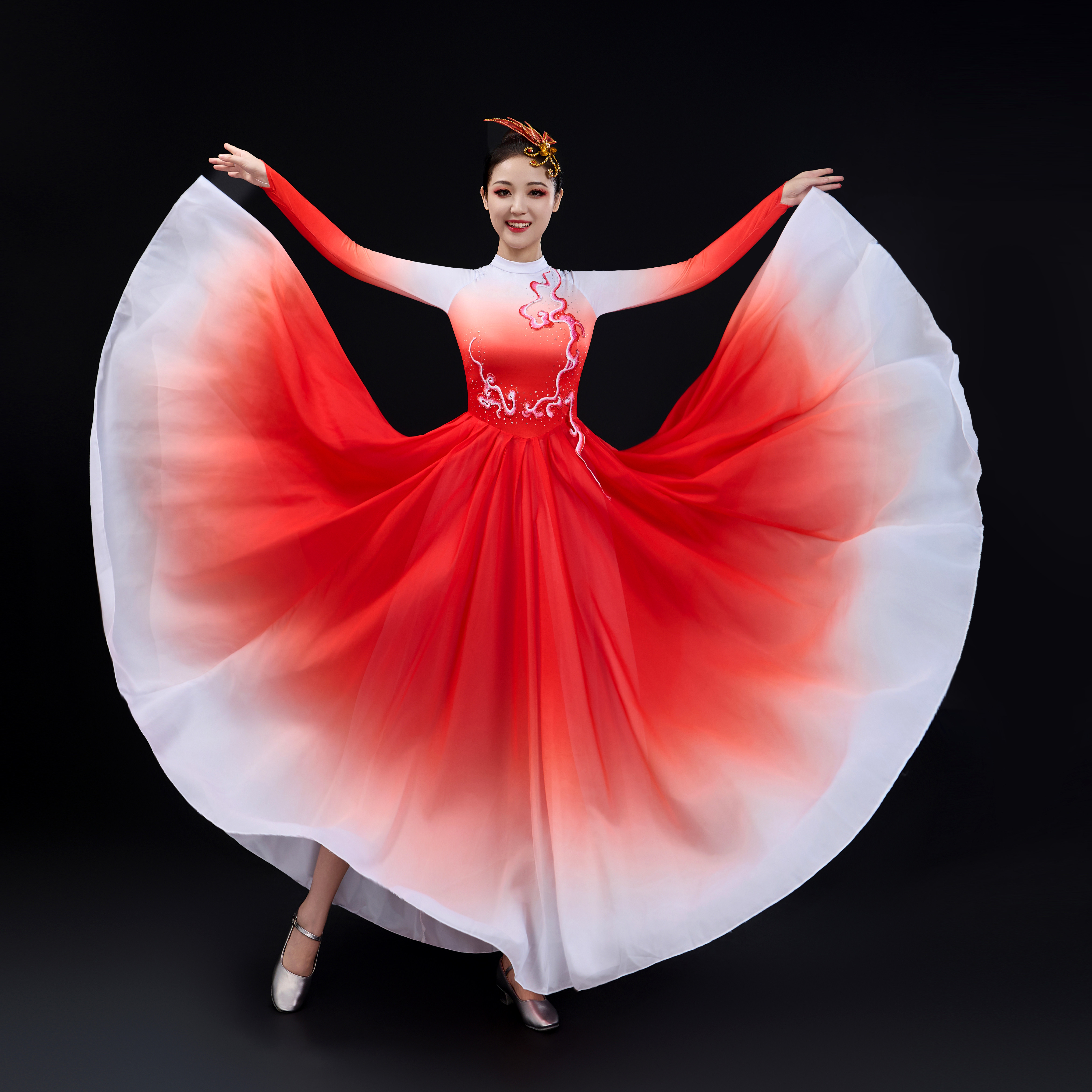 👗这款演出服真的是让我一见倾心!它的设计简直太美了!大摆裙的款式,优雅又时尚,仿佛把整个中国现代舞的盛世欢歌展现得淋漓尽致。穿上它,仿佛自己也融入了这片美丽的中国大地,感受到了现代舞的魅力。