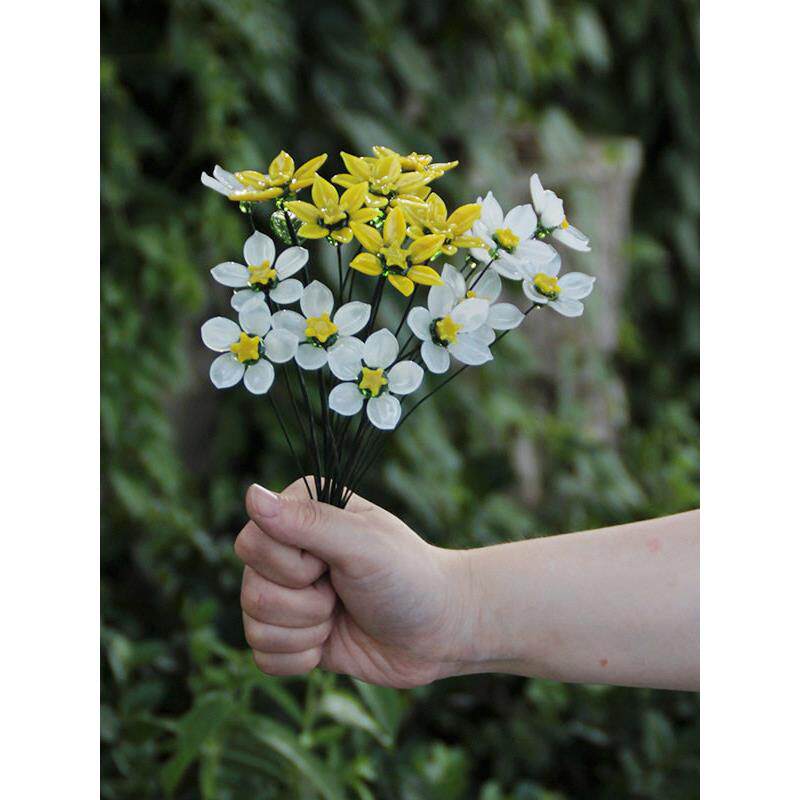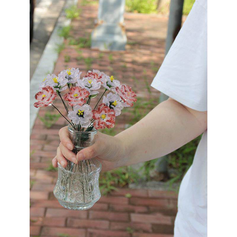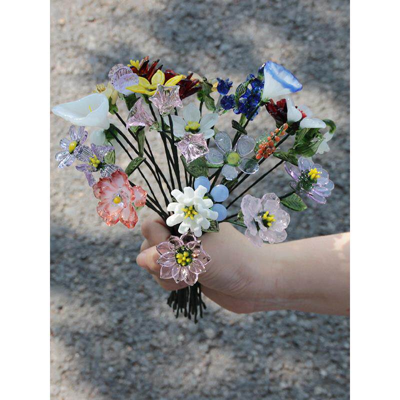 📚 淄博琉璃手工玻璃花朵彷真花家居桌面装饰花瓶插花永生花摆件礼物