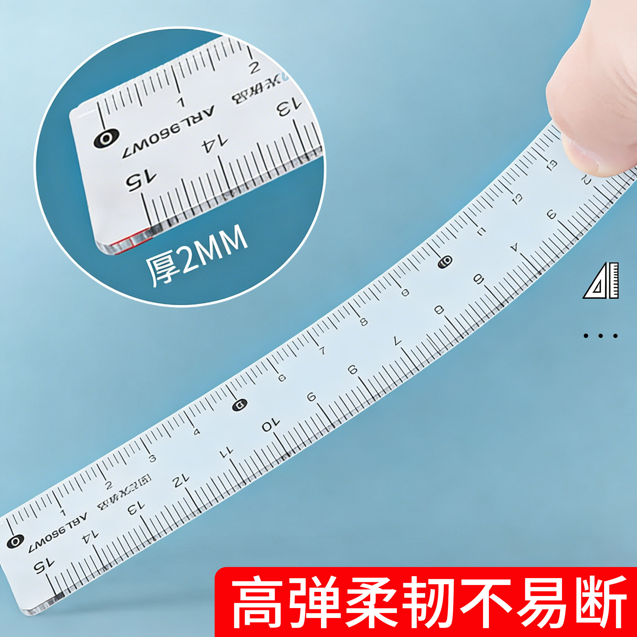 📚 晨光尺子套装小学生专用三角尺透明套尺初中高颜值防粘硬直尺15cm20厘米软尺子一二三年级多功能三角板量角器
