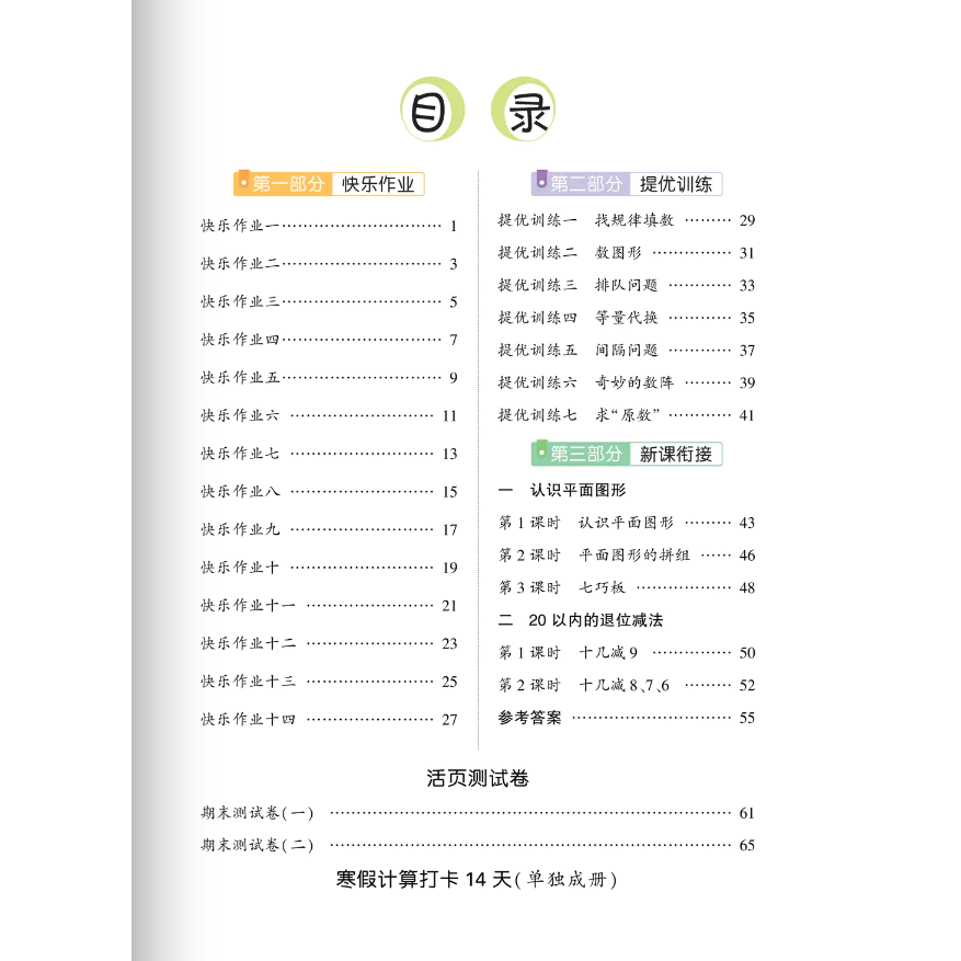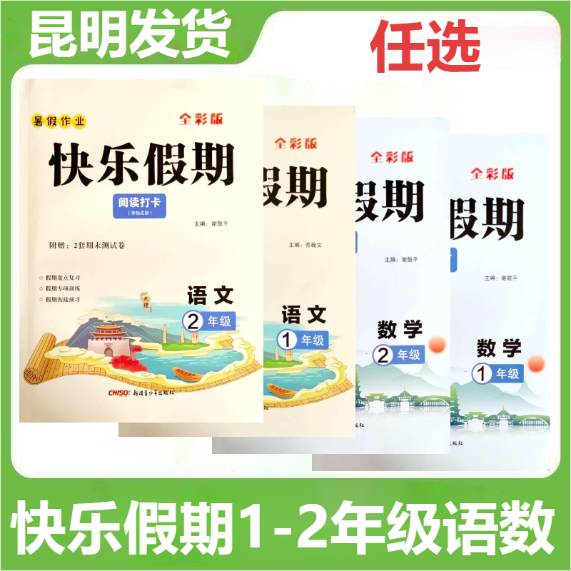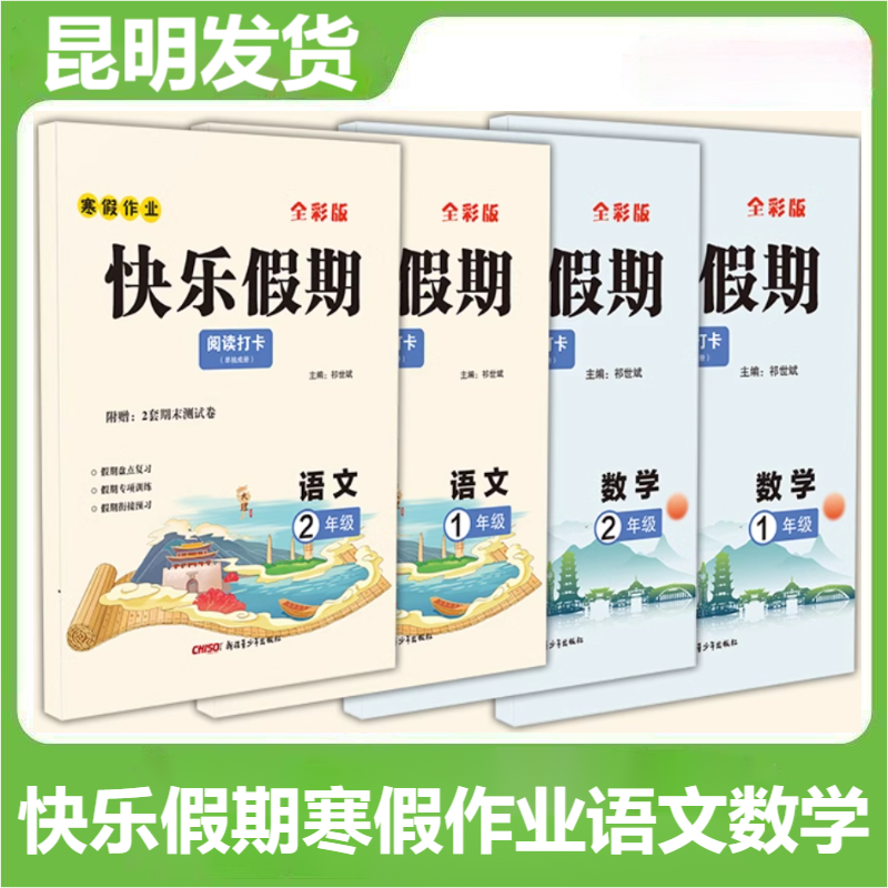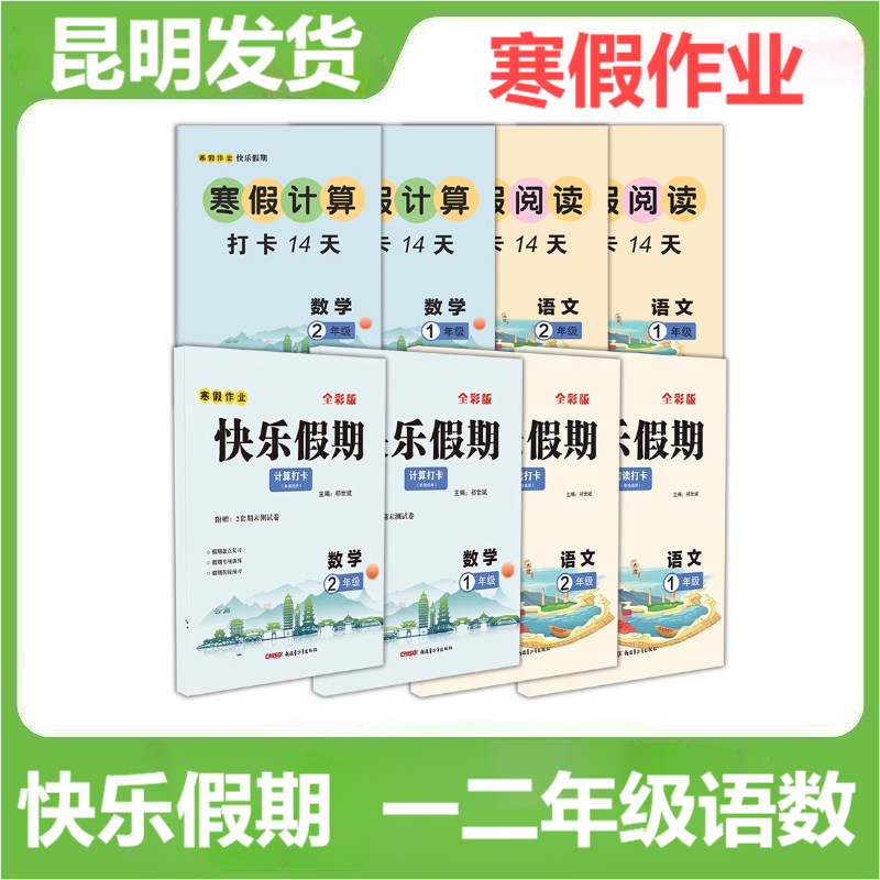 📚 快乐假期数学计算打卡语文阅读打卡含期末试卷全彩版小学生一二年级寒假作业语文假期阅读数学计算天天练寒假衔接快乐假期寒假作业