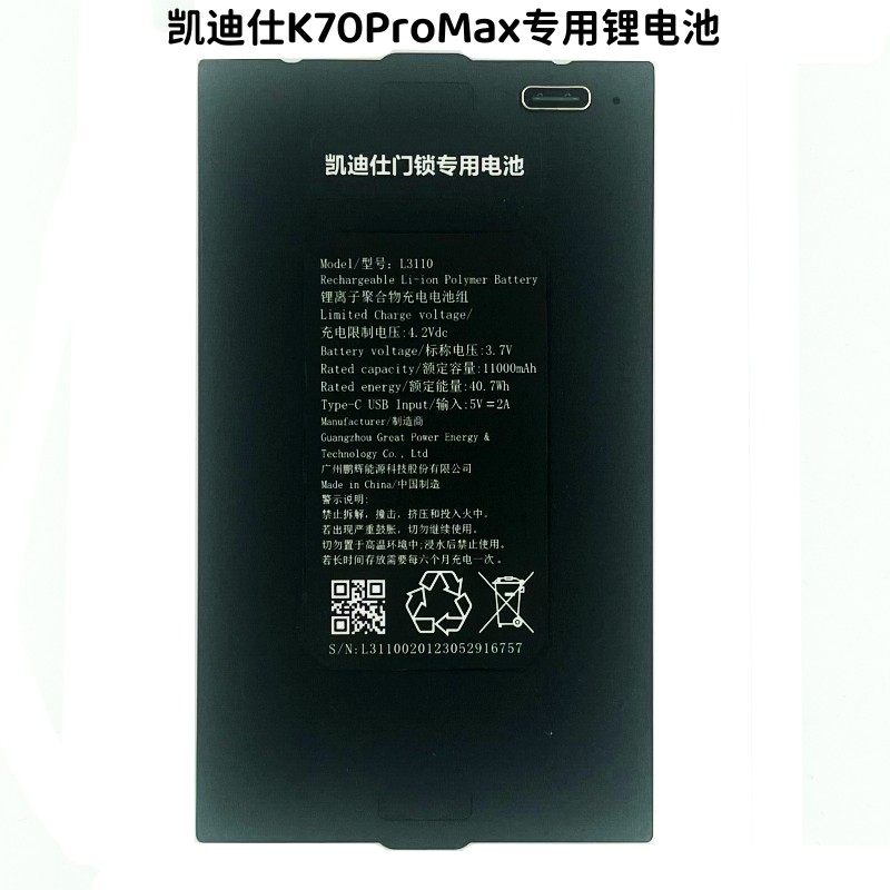 📚 凯迪仕智能锁K70ProMax/K70ProPlus专用锂电池11000毫安型号L3110