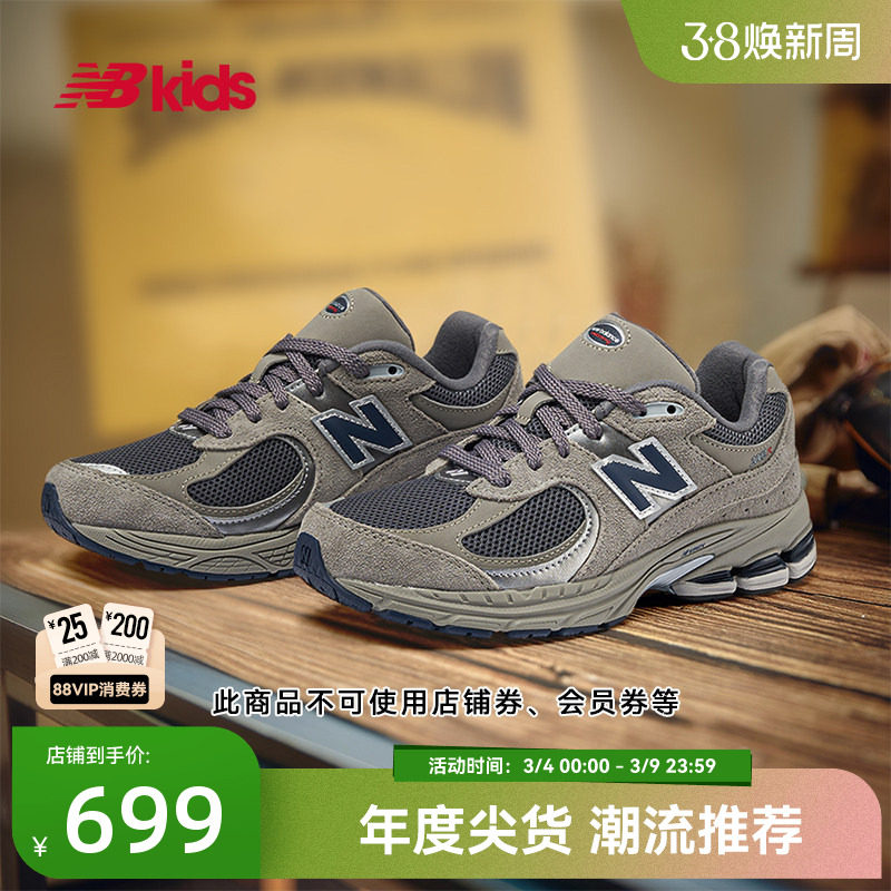 📚 Newbalance nb官方童鞋 7-14岁大童春季复古格雷系灰运动鞋2002R0