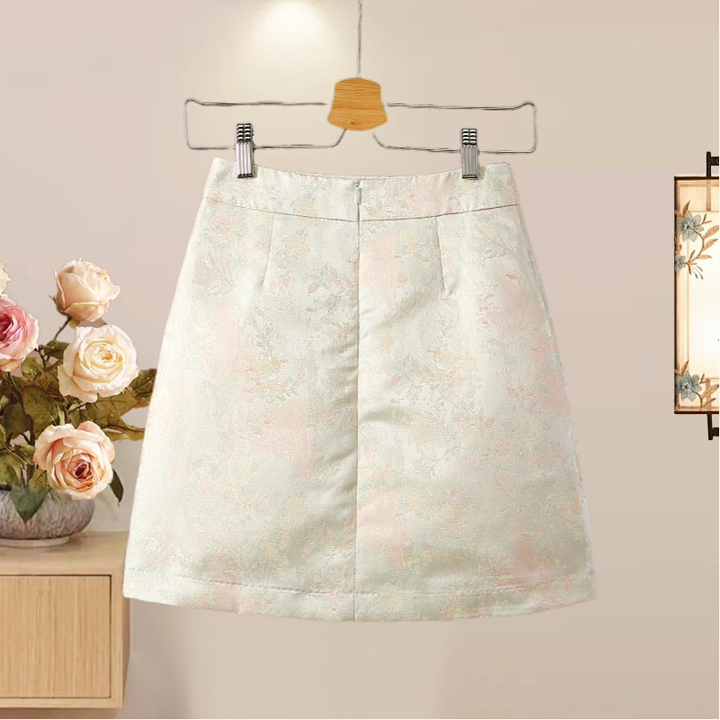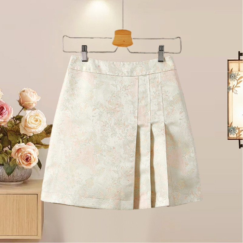 📚 薄荷曼波半身裙复古文艺半百褶裙中式国风高腰显瘦a字裙夏季短裙