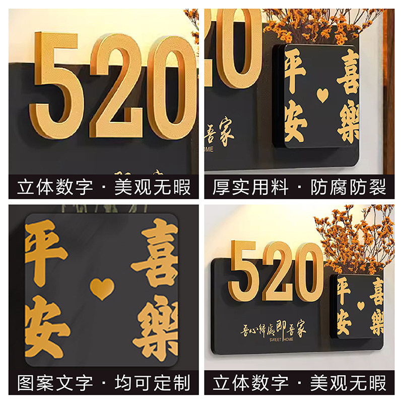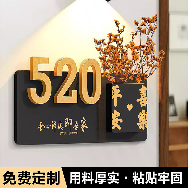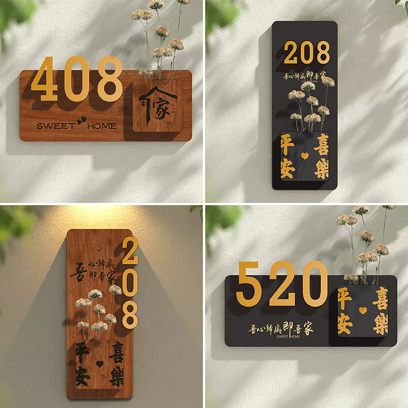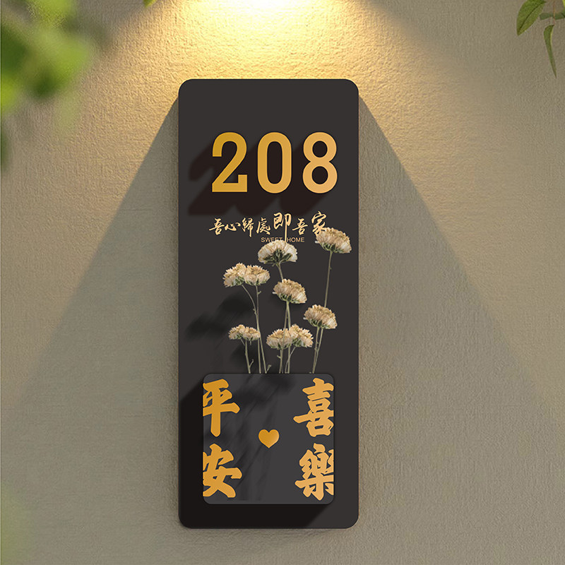 📚 入户门装饰门牌号高级感家用干花号码牌定制创意个性轻奢家庭木牌订制住宅庭院大门公司门口人体感应灯挂牌