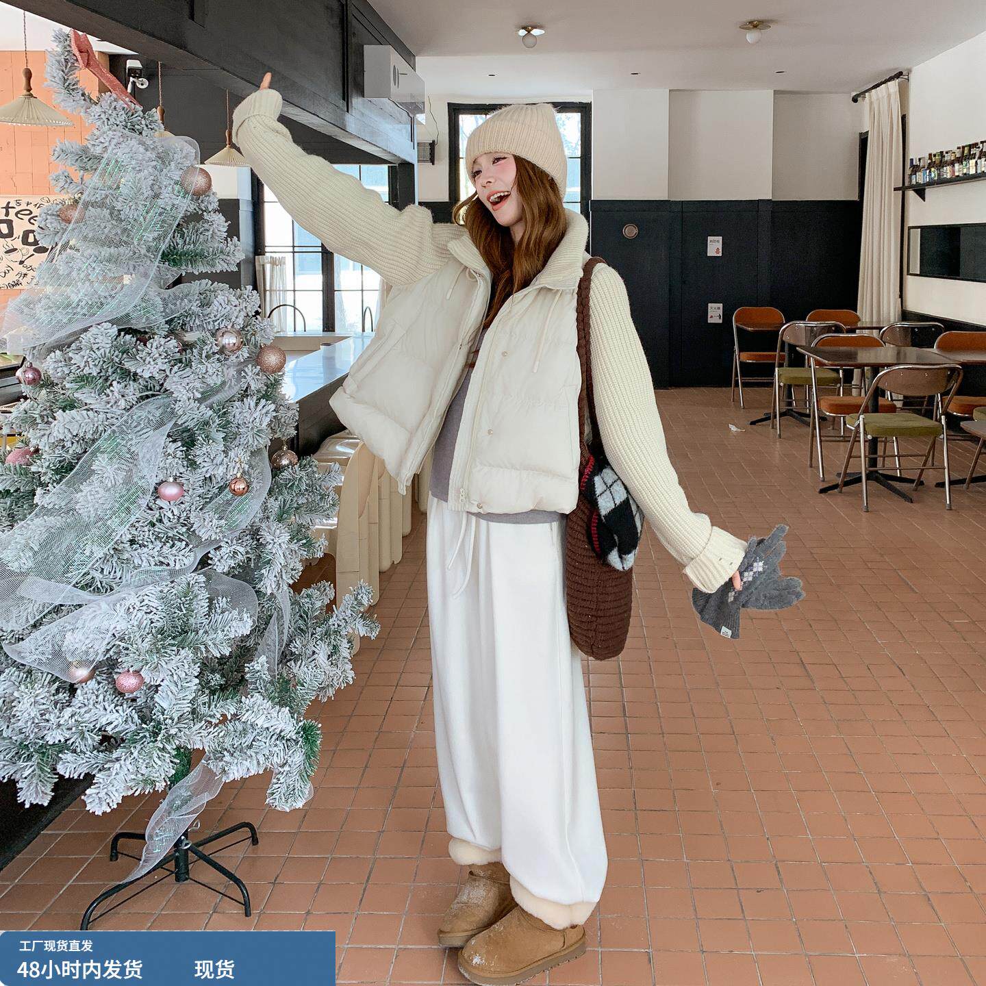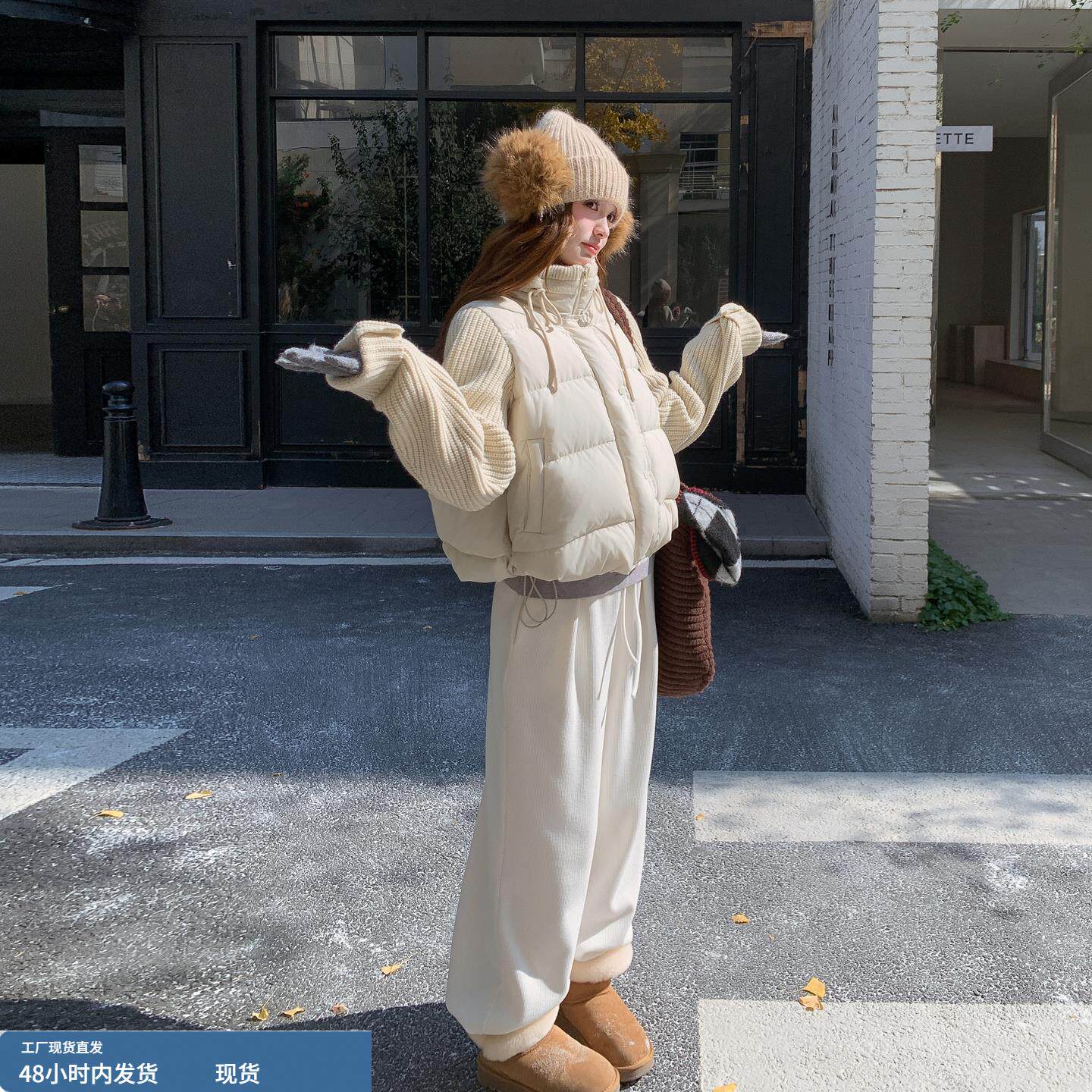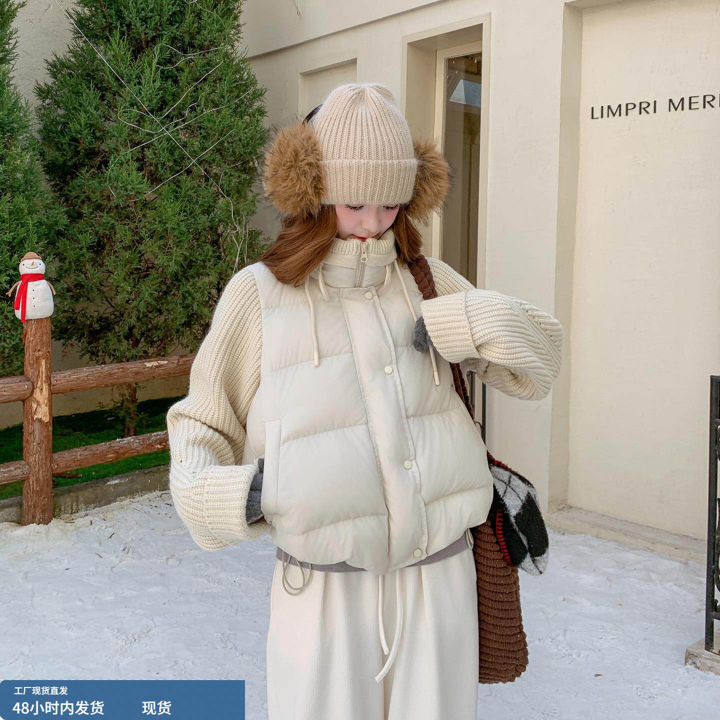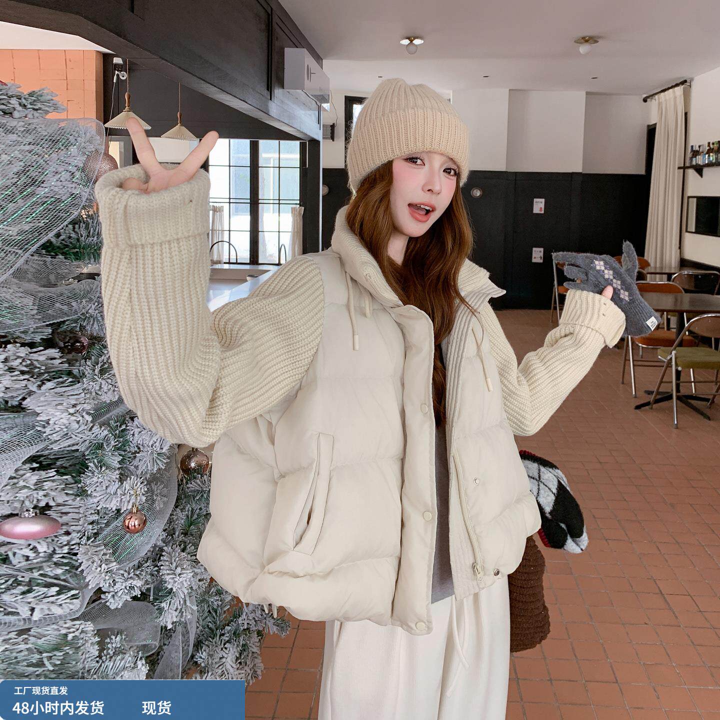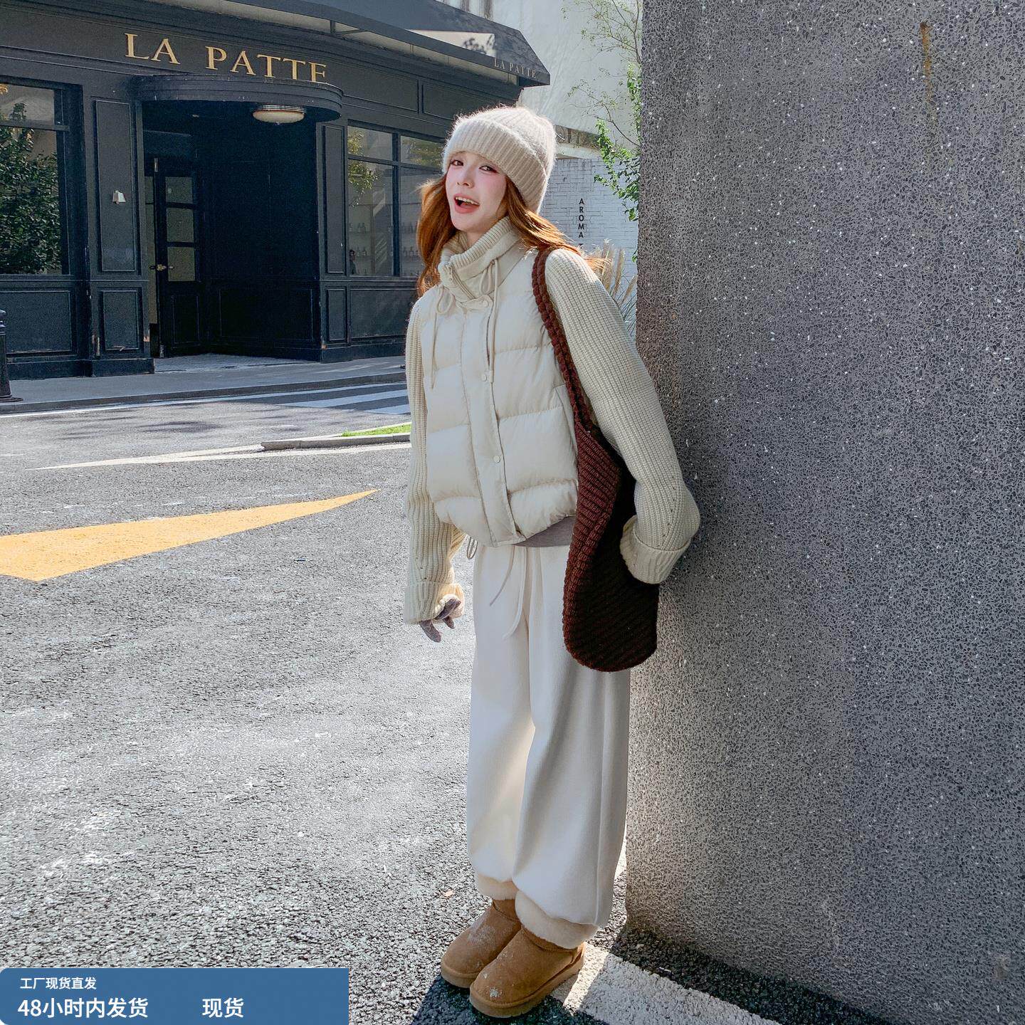 📚 米色爆火针织拼接保暖羽绒服女冬季2025年新款设计感加厚保暖外套