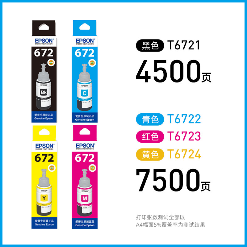 📚 EPSON爱普生原装墨水672 L130 L301 L313 L310 L360 L363 L380 L383 L351 L1300 L551 L405 T6721 连供打印机