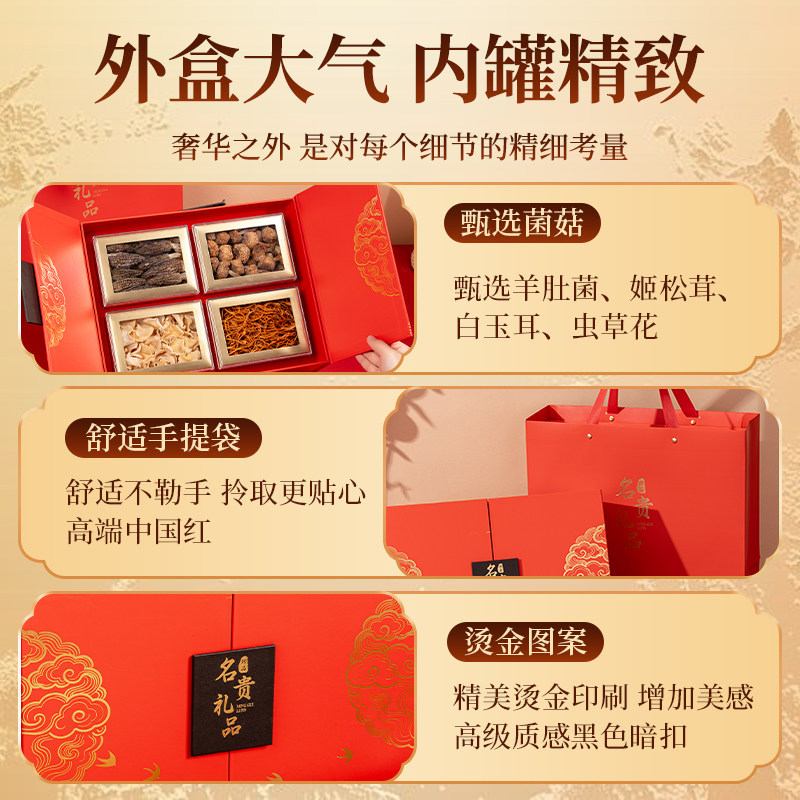 📚 山珍菌菇过年货干货礼盒云南东北特产羊肚高档年货礼品虫草花松茸