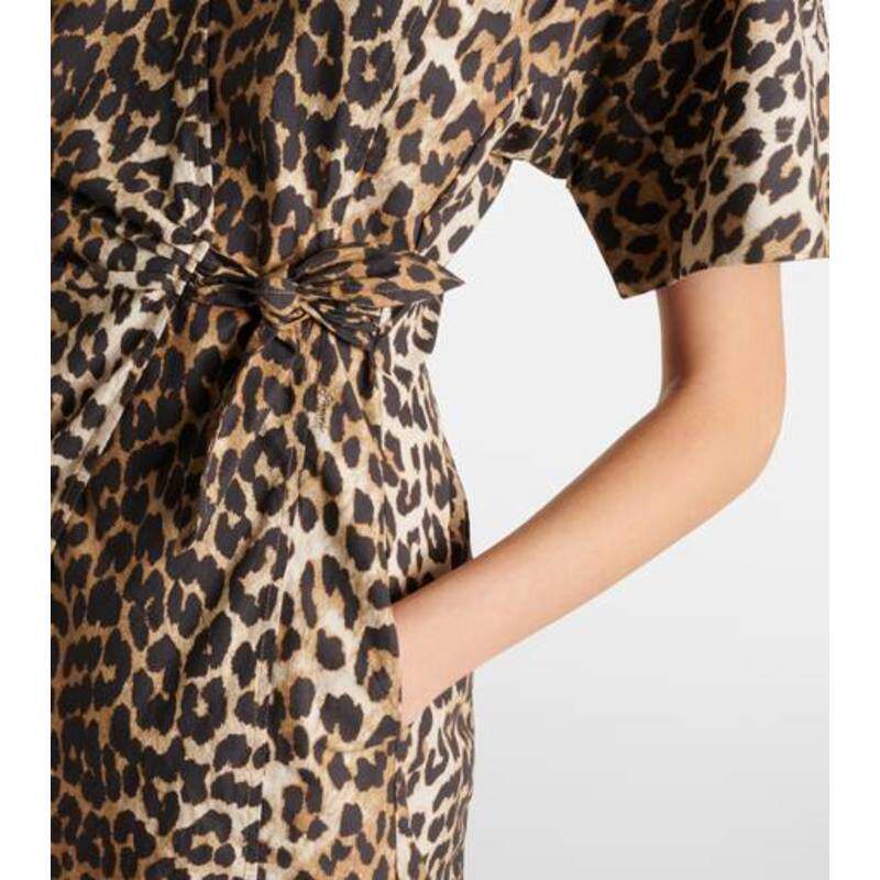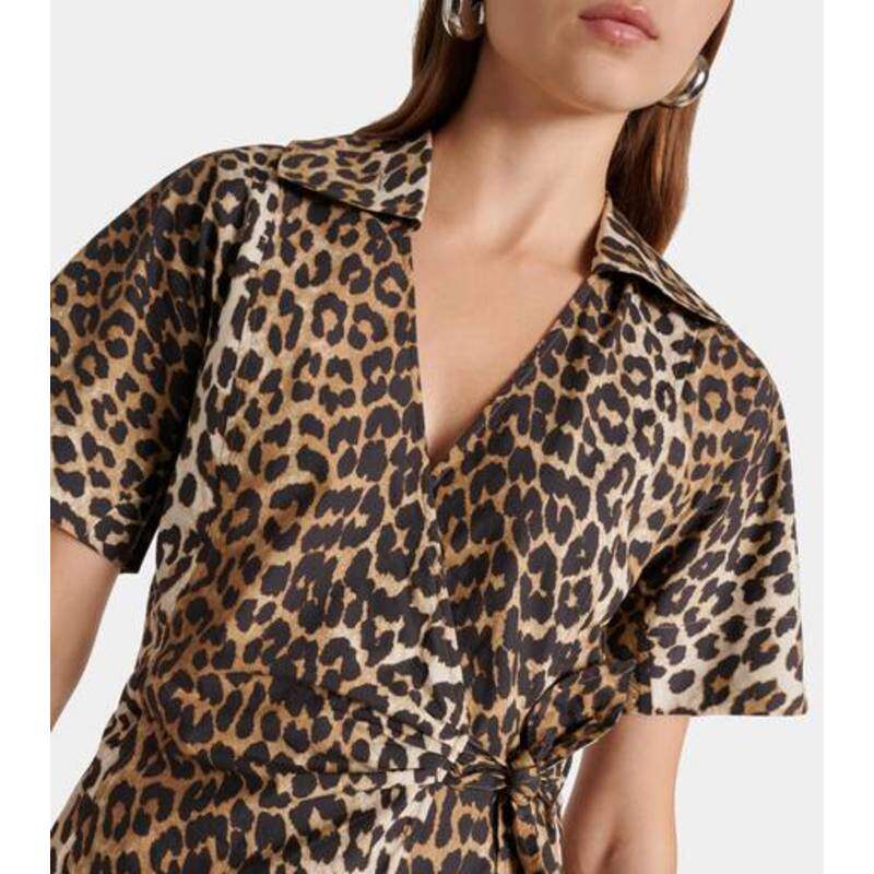 📚 Ganni 甘尼 女士 短款连衣裙 豹纹棉质缠绕式连衣裙