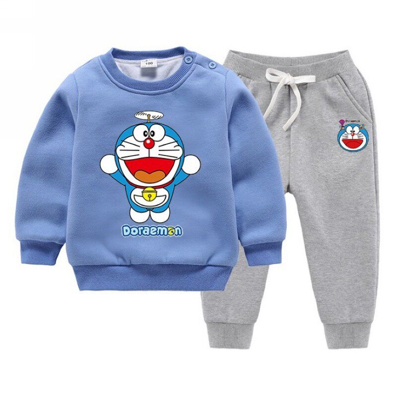 📚 冬季童装新款男童女童叮当卫衣儿童哆啦a梦加绒加厚机器猫套装