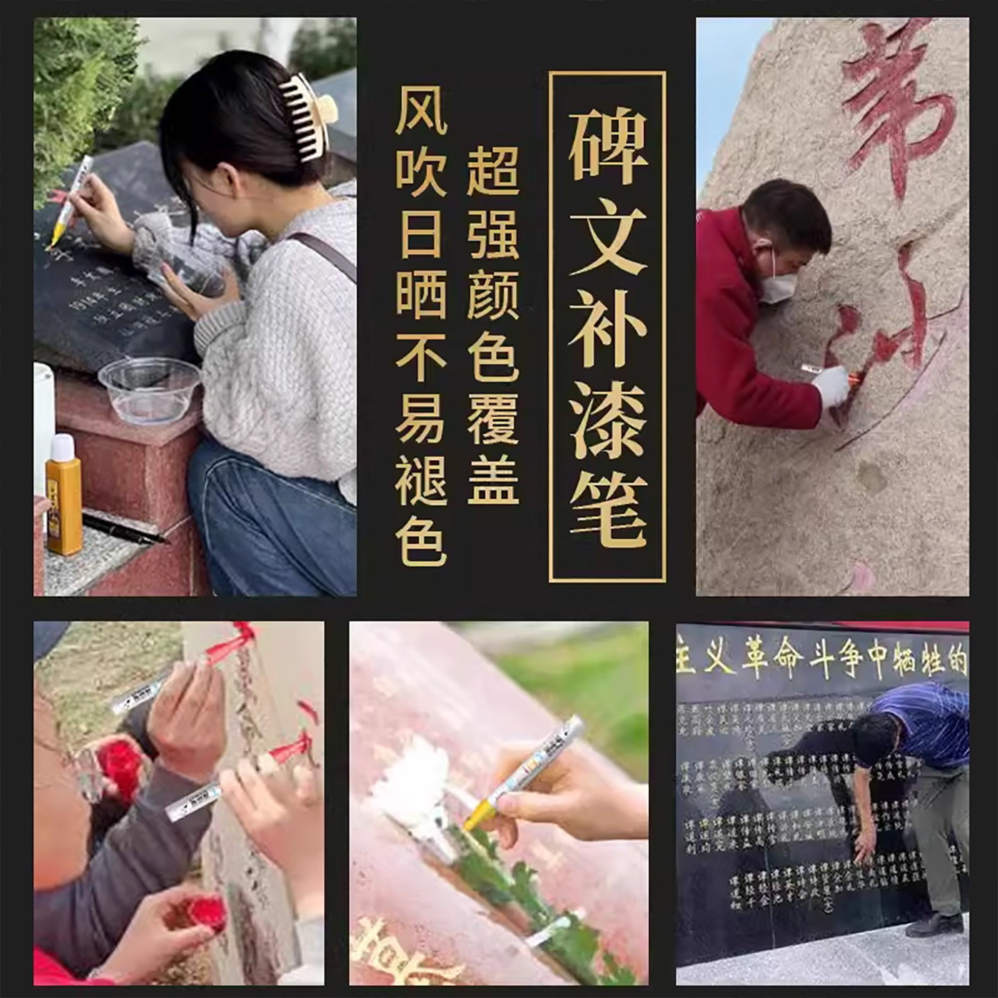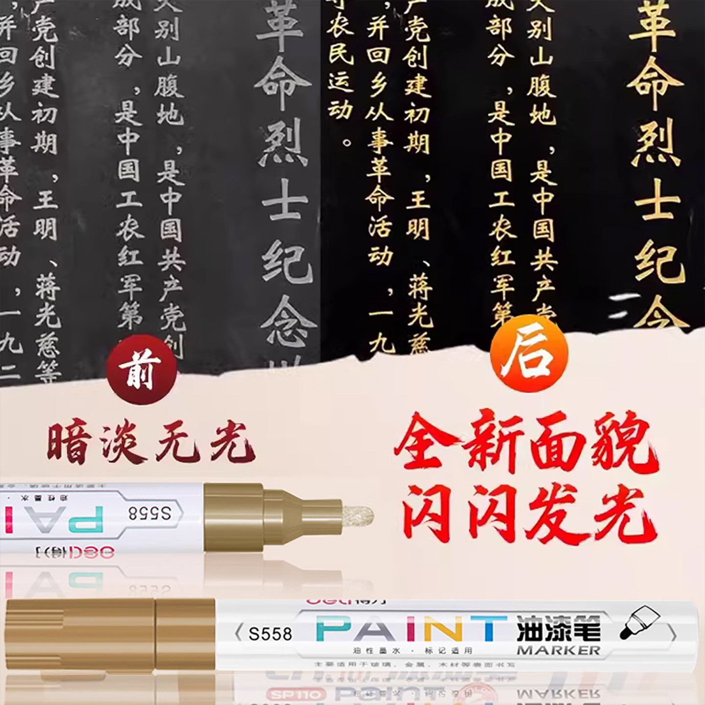 📚 得力碑文补漆笔描红笔不掉色石碑油漆笔墓石幕碑黑色描碑笔功德碑笔专用用具金色陵园补色墓碑笔描金笔字