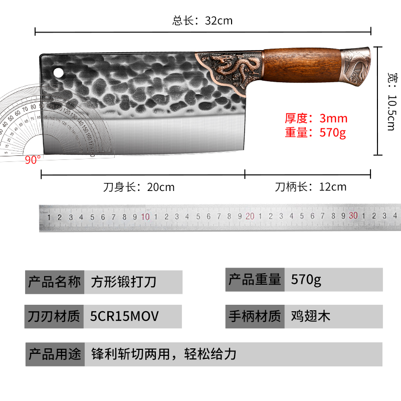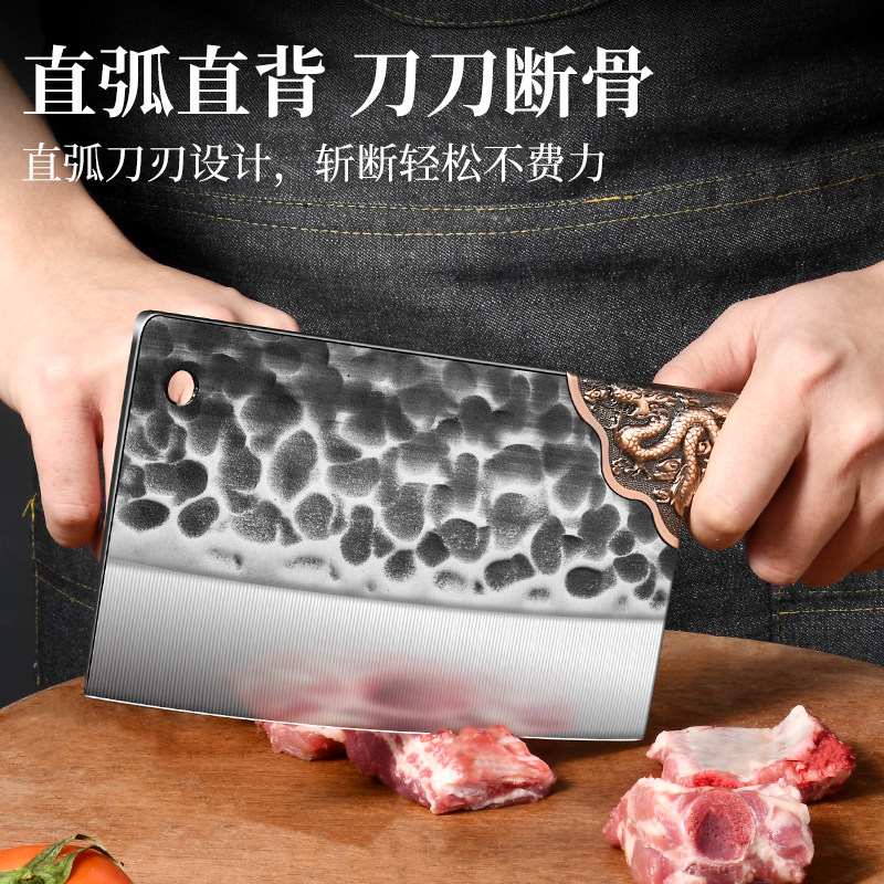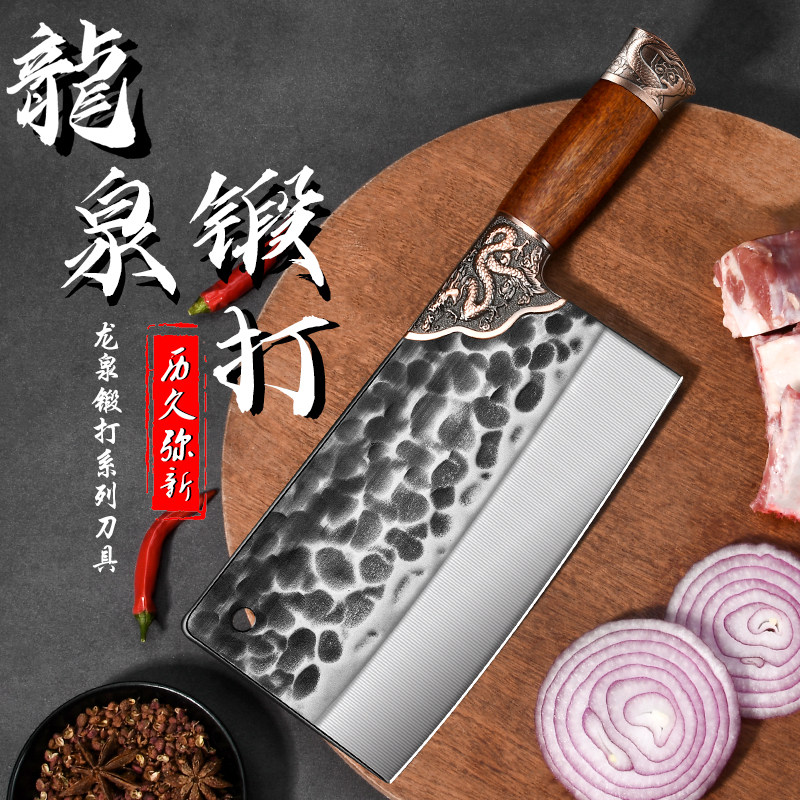 📚 龙泉锻打菜刀家用斩切两用刀具厨师专用切肉刀砍骨刀超快锋利厨房