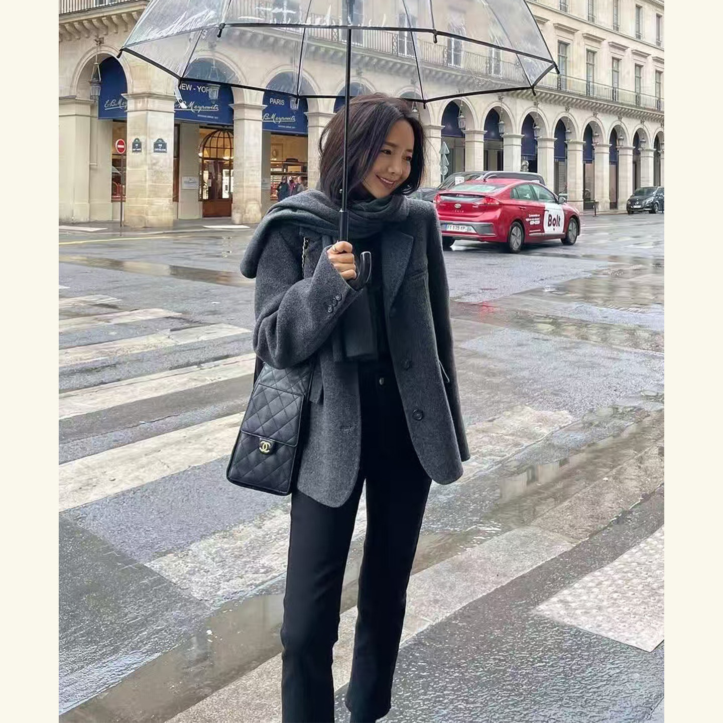 📚 高级感灰色短款毛呢外套女韩版2025秋冬小个子新款西装呢子大衣潮
