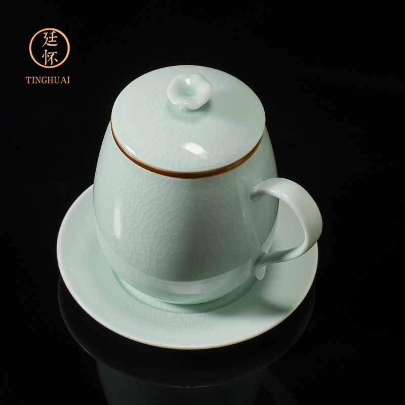 📚 廷怀窑汝州汝瓷汝窑办公杯陶瓷茶杯带盖过滤功夫茶泡茶水杯原产地