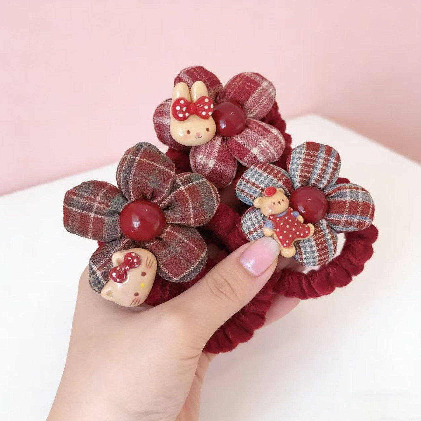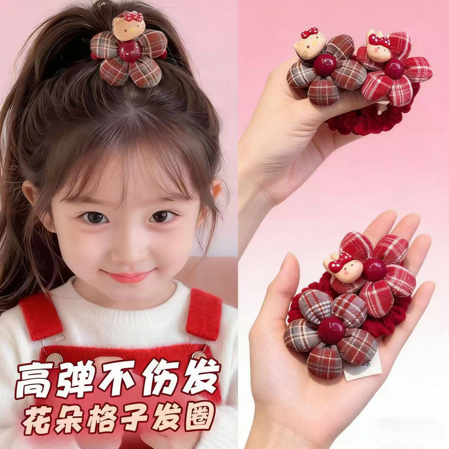 📚 KT猫儿童发圈女童秋冬红色发绳头饰女孩高弹力不伤发新年皮筋发饰