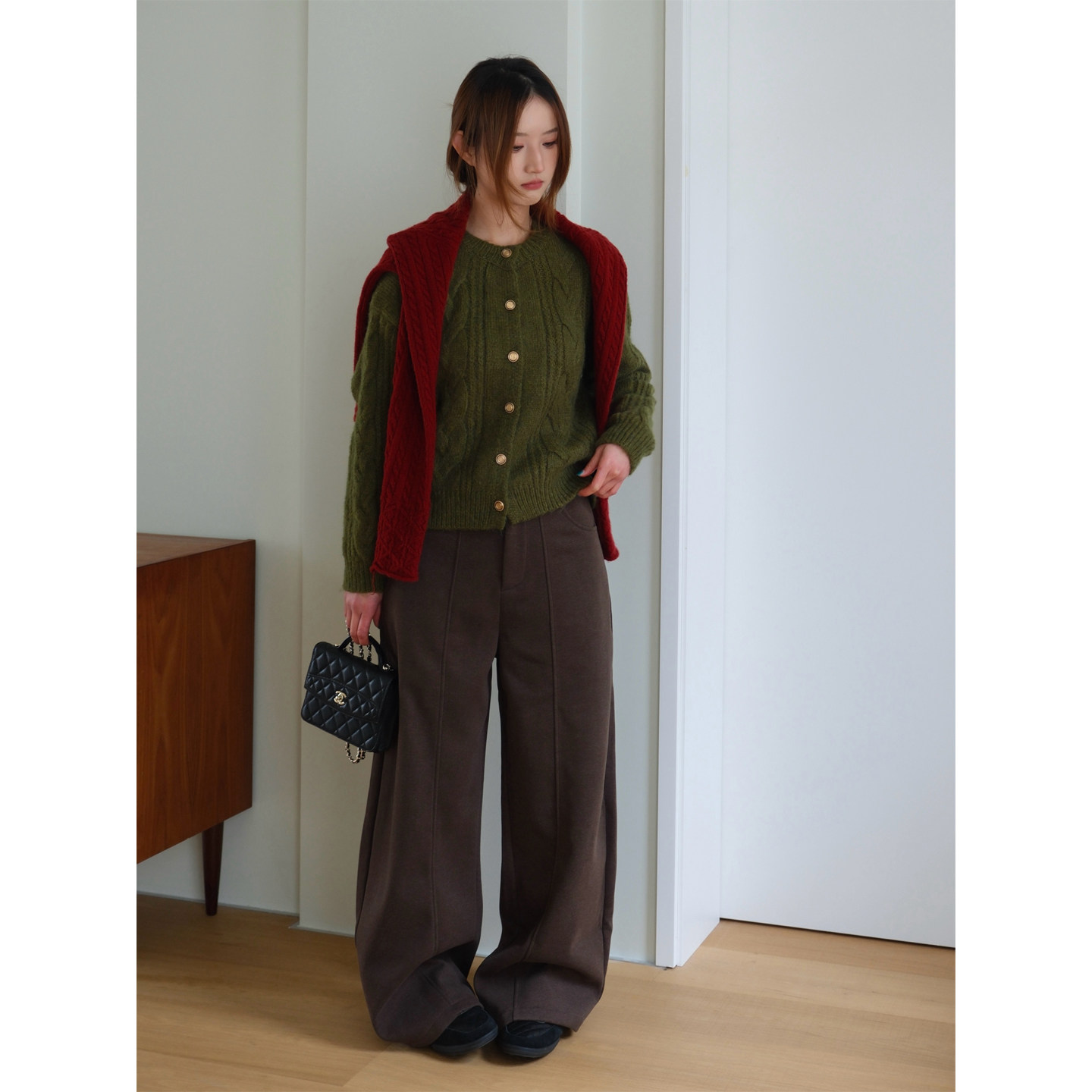 📚 小阿秋老钱风简约百搭加绒弯刀西裤松紧腰中缝休闲裤阔腿裤女冬