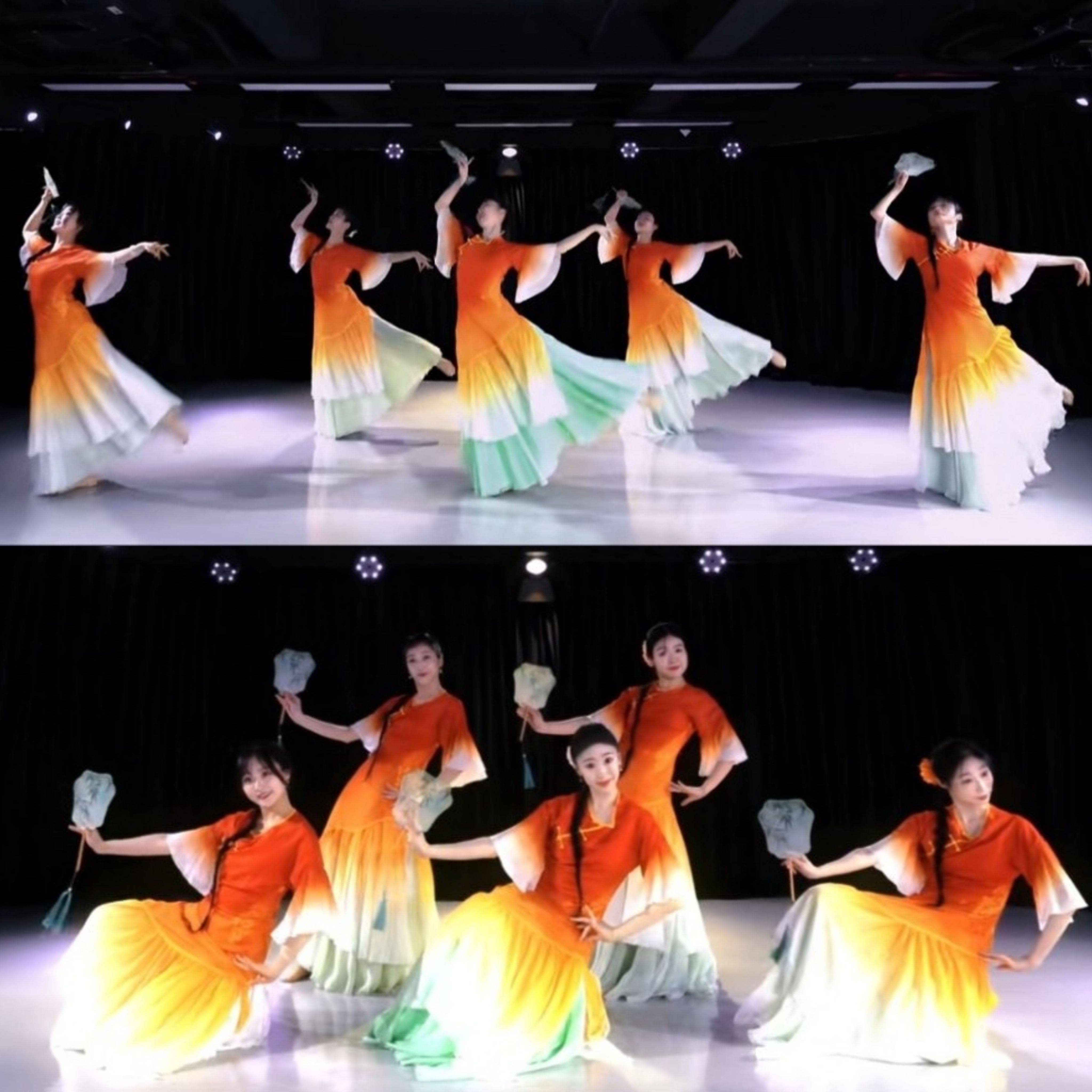 📚 大码弹力旗袍裙新款清风徐来舞蹈服720度大摆裙套装古典舞连衣裙