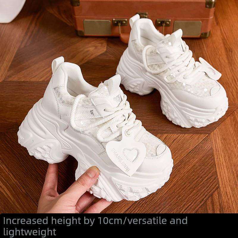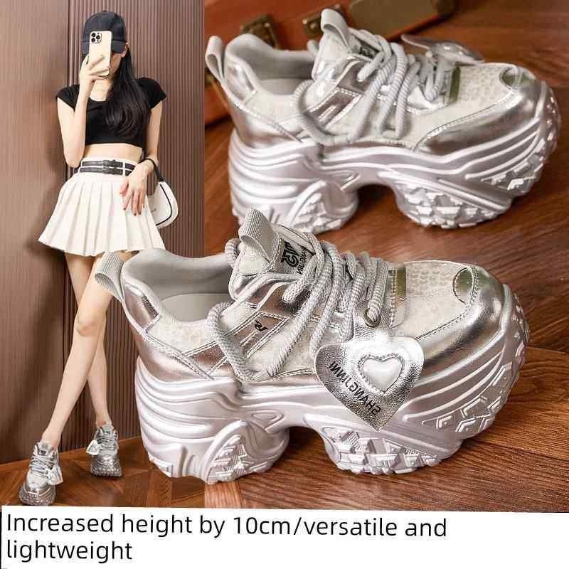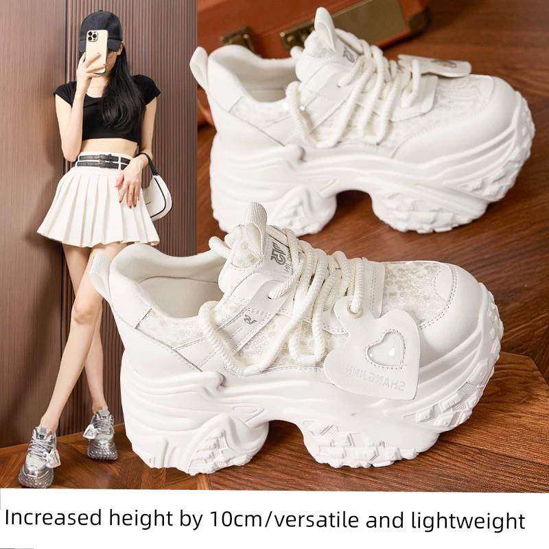 📚 品牌超级厚底10厘米女式厚底鞋跟2025新款透气小鞋跟增加女性高度