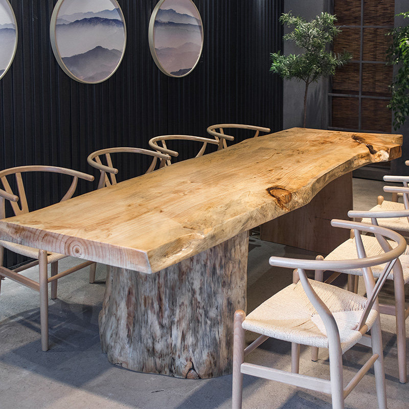 📚 实木大板餐桌简约小户型吃饭桌服装展示桌原木工作台办公桌泡茶桌