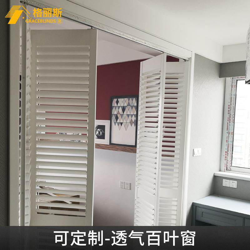 📚 木质s百tqc叶窗帘shuter推t折叠可调节卧室隔断遮光PV拉C实木百叶