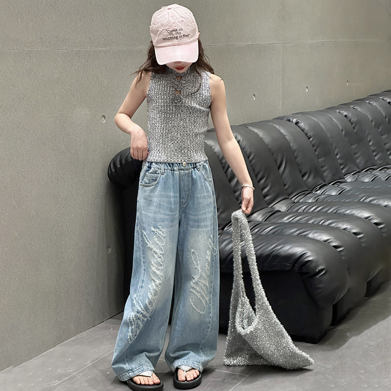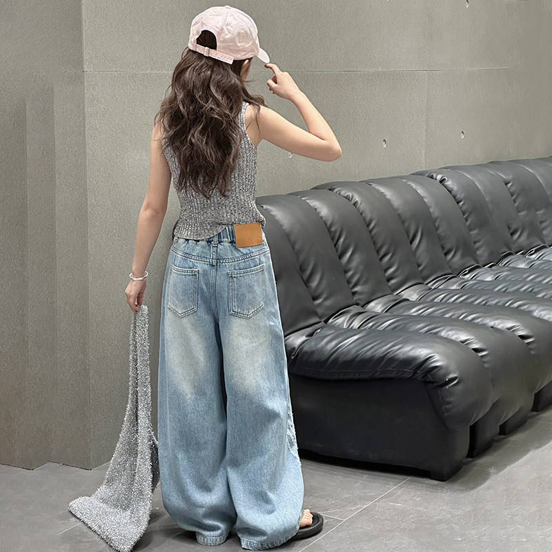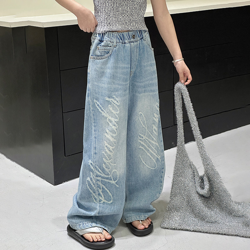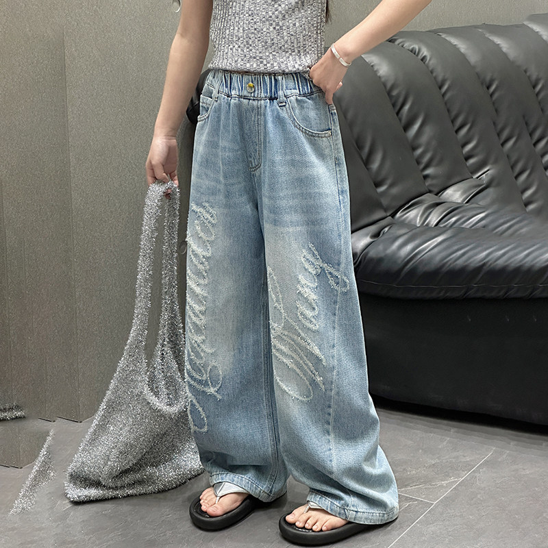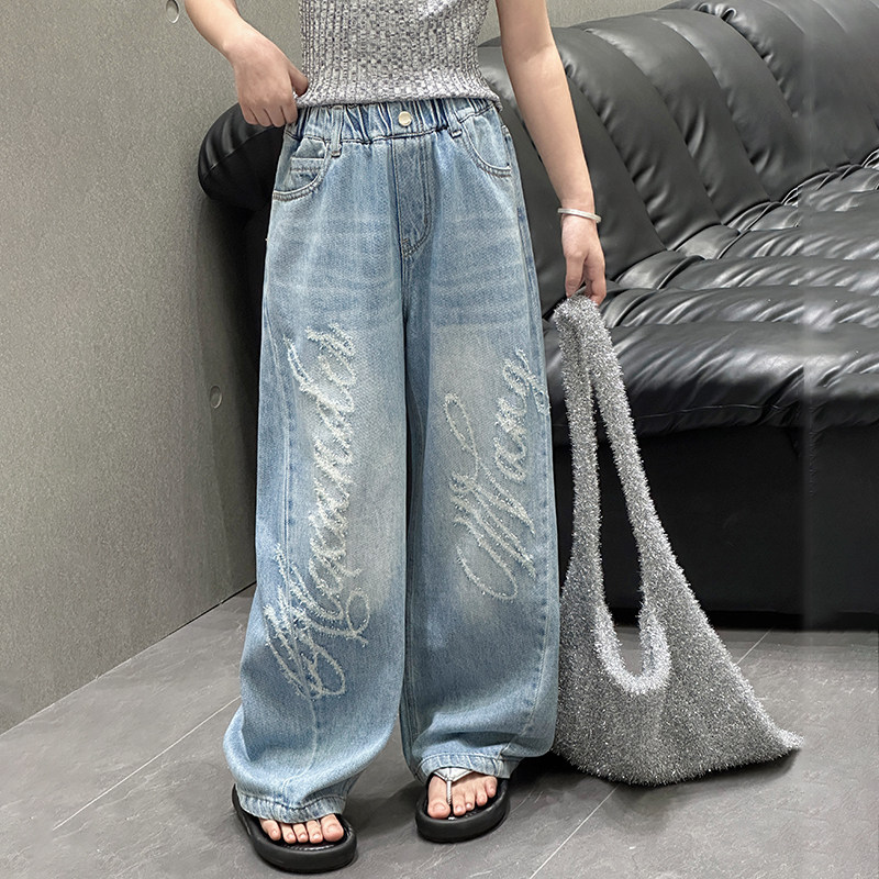 📚 女童街头风牛仔裤2026春秋新款中大童百搭洋气阔腿裤儿童休闲裤子