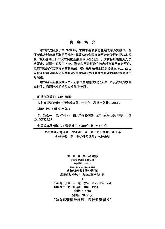 📚 [按需印刷]农村互联网金融/-以田东县为例科学出版社