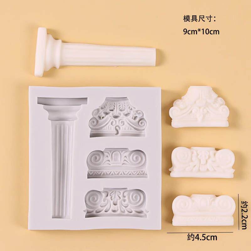 📚 欧式覆古花纹宝石相框浮雕图腾罗马柱矽胶模具翻糖蛋糕装饰模烘焙