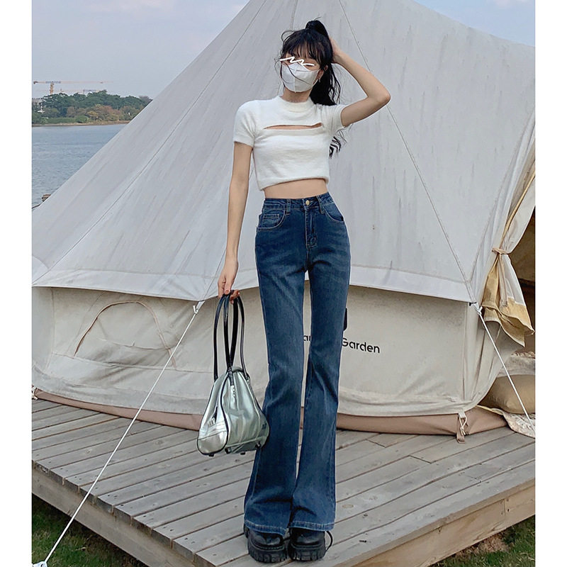 📚 2025秋季新款女装微喇叭牛仔裤弹力修身美式复古拖地裤